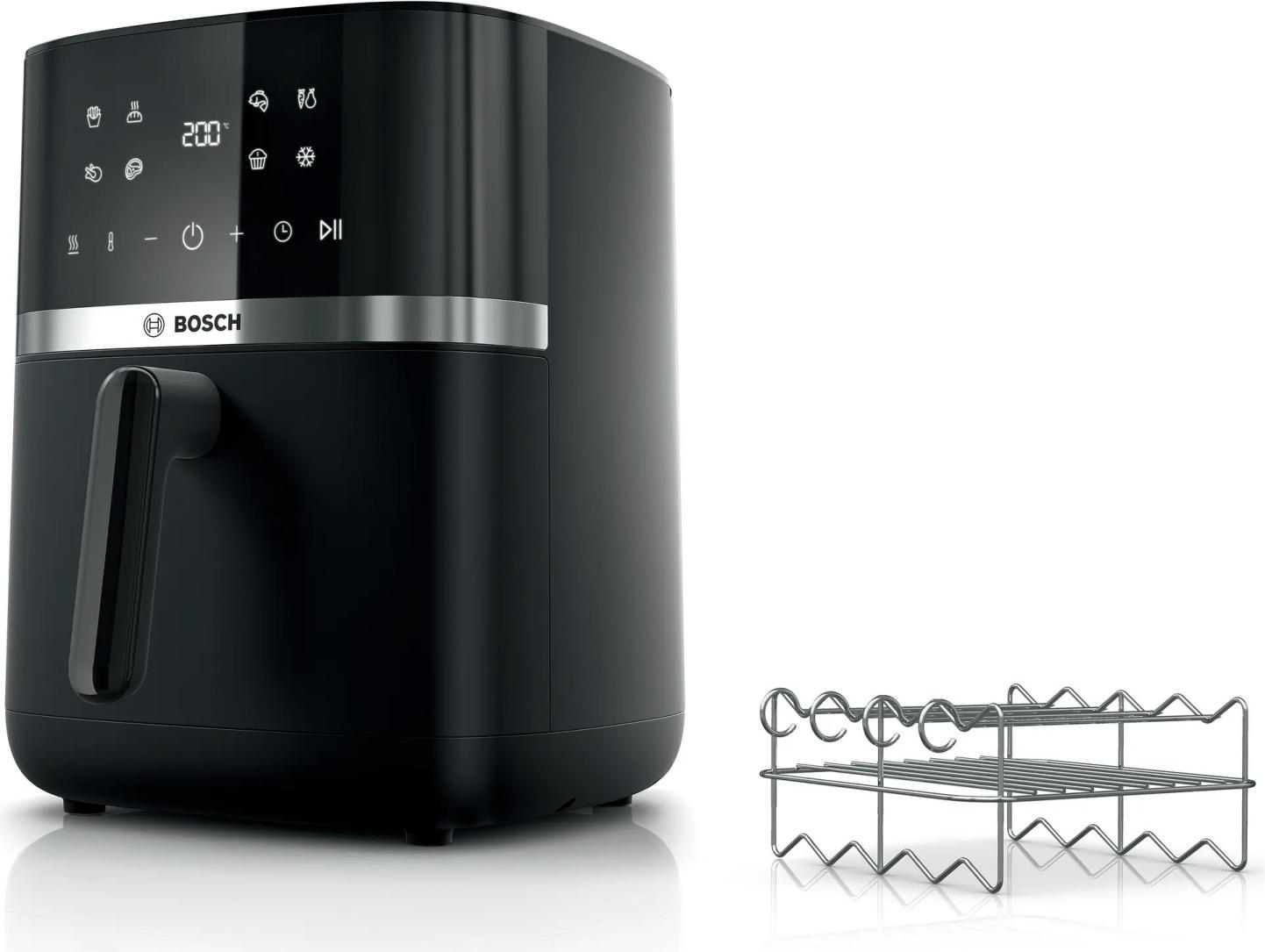 Bosch - EAN: 4242005525973 - Einfach Schneller. Schneller Lecker. Die Bosch Heißluftfritteusen: Super Schnell Gekocht Und Wieder Sauber Gemacht Für Schnelleres Kochen: Dank Air Frying Technologie Ohne Vorheizen Direkt Starten. Doppelheizung: Für Ein Gleichmäßiges Garergebnis, 2 Heizelemente Oben Und Unten. Weniger Fett: Dennoch Viel Geschmack. 7 Voreinstellungen + Auftaufunktion: Für Unkompliziertes Kochen Von Fisch, Fleisch Und Gemüse. Grill-Set: Mehr Platz Und Perfekte Spieße. 6.1 L Kapazität Für Bis Zu 4 Portionen Mühelose Reinigung Dank Spülmaschinengeeigneten Teilen: (Garkorb Mit Einem Entnehmbaren Gitter - Entweder Man Spült Beides Unter Fließendem Wasser Ab, Was Materialschonender Ist, Oder Man Gibt Beides Einfach In Die Spülmaschine) - bei mediamarkt.de - aus Yadore Produktdaten ![]() Bosch MAF462B1, Serie 4, Heißluftfritteuse