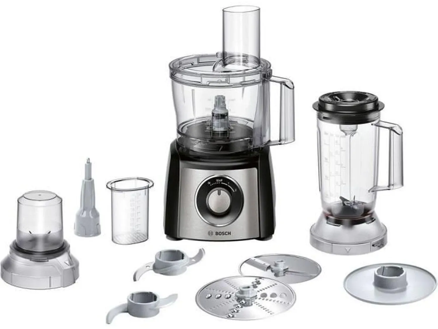 Auf Lager Versand durch AmazonBosch Kompakt-Küchenmaschine Multi Talent 3, 50 Funktionen, 2,3 l Schüssel, Mixer, spülmaschinengeeignet, Universalzerkleinerer, kleine Küchenmaschine, 800 Watt, schwarz/Edelstahl, MCM3501M