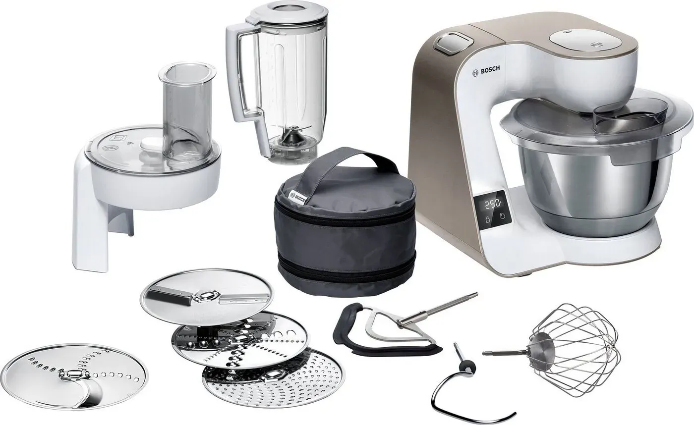 Beliebtheit und BewertungDie Bosch MUM 5 ist ein Bestseller, besonders wegen ihrer Vielseitigkeit, Zuverlässigkeit und des guten Preis-Leistungs-Verhältnisses[2][4]. In Tests wird sie regelmäßig als 'Preis-Leistungs-Sieger' gelobt, da sie auch anspruchsvolle Aufgaben wie Hefeteig zuverlässig meistert - ein Bereich, in dem viele günstigere Maschinen scheitern[4][14]. Die Verarbeitung (vor allem die stabile Edelstahlschüssel) und die einfache Reinigung werden besonders hervorgehoben[4]. Vergleich mit anderen Marken: Die MUM 5 schneidet in unabhängigen Tests oft besser ab als vergleichbare Modelle von KitchenAid oder Kenwood, insbesondere im Hinblick auf Flexibilität und Preis[6]. Bosch punktet mit einem breiten Zubehörsortiment und der Möglichkeit, auch ältere Aufsätze weiterzuverwenden[7]. Modelle und VariantenDie wichtigsten Modelle der MUM 5-Serie sind: | Modellname | Motorleistung | Besonderheiten | Direkte Suche im Meta-Preisvergleich | |---------------------------|--------------|---------------------------------------|--------------------------------------| | MUM54251 | 900 W | Weiß/Silber, Standardausstattung | Bosch MUM54251 | | MUM58257 | 1000 W | Weiß/Silber, mehr Power | Bosch MUM58257 | | MUM58720 | 1000 W | Rot/Silber, optisches Highlight | Bosch MUM58720 | | MUM5X720, MUM5XC4E, MUM5XW20 | 1000 W | Mit integrierter Waage, verschiedene Farben | Bosch MUM5X720, Bosch MUM5XC4E, Bosch MUM5XW20 | Hinweis: Es gibt auch eine Spielzeug-Variante ('Bosch Junior Chef MUM 5') für Kinder - diese ist batteriebetrieben und hat keine echte Küchenfunktion[3][11]. Preisbereich und Kaufempfehlung
