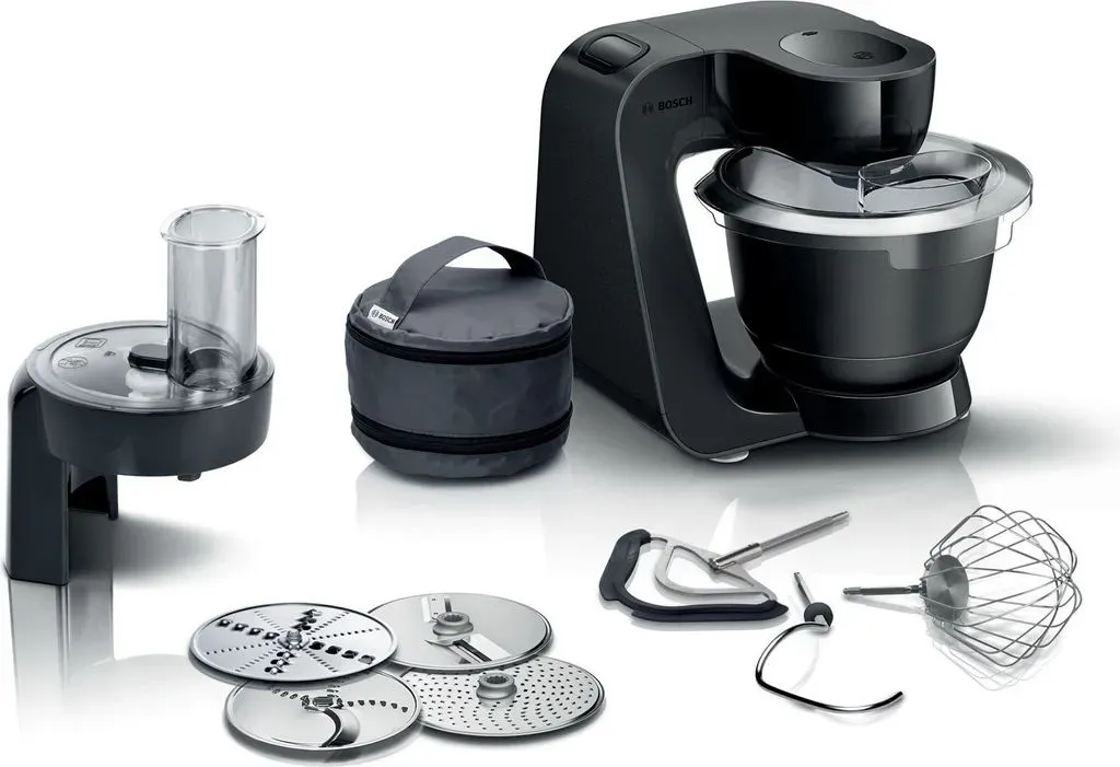 4 Händlerangebote bei billiger.de - Kategorie: Küchenmaschinen - Bosch - 3.9 L, 2.7 kg, 1000 W, 220 - 240 V, 50/60 Hz Extra starker Motor für hohe Anforderungen. Möchten Sie nach hohen Standards backen und kochen können? Dank des extra starken Motors können Sie alle Ihre Back- und Kochideen problemlos realisieren. Damit gelingt eine einfache Verarbeitung von schweren Teigen ebenso wie von großen Mengen Mehl und Zutaten. Große Schüssel für die optimale Zubereitung der Teige. Man erkennt eine optimale Schüssel nicht nur an ihrer Größe. Für beste Ergebnisse sind Innenform unserer Schüssel und Werkzeuge aufeinander abgestimmt. Die hochwertige, große Edelstahlschüssel mit 3,9 l Fassungsvermögen eignet sich problemlos sowohl für kleine Mengen als auch für 2,7 kg Kuchen- und Hefeteig. Perfekte Ergebnisse dank dreidimensionalem Rührsystem. Für perfekte Ergebnisse müssen Zutaten gut miteinander vermengt werden. 3D PlanetaryMixing heißt: Die Werkzeuge bewegen sich in 3 Richtungen, der Sockel entgegengesetzt dazu. Dadurch werden Zutaten von der Seite, dem Boden und der Mitte der Schüssel aufgenommen, was den Teig so geschmeidig macht. Leichte, schnelle Zubereitung mit 7 Geschwindigkeitsstufen. Jedes Zubehörteil erfordert eine unterschiedliche Geschwindigkeitseinstellung. Dank 7 individueller Geschwindigkeitsstufen lassen sich Ihre Gerichte schnell, einfach und präzise zubereiten. Sie möchten mehr Geschwindigkeit oder Smoothies im Mixer anfertigen? Nutzen Sie einfach die Momentstufe ... ![]() ![]() BOSCH Küchenmaschine MUM5 MUM59N26CB (1.000 Watt, schwarz)