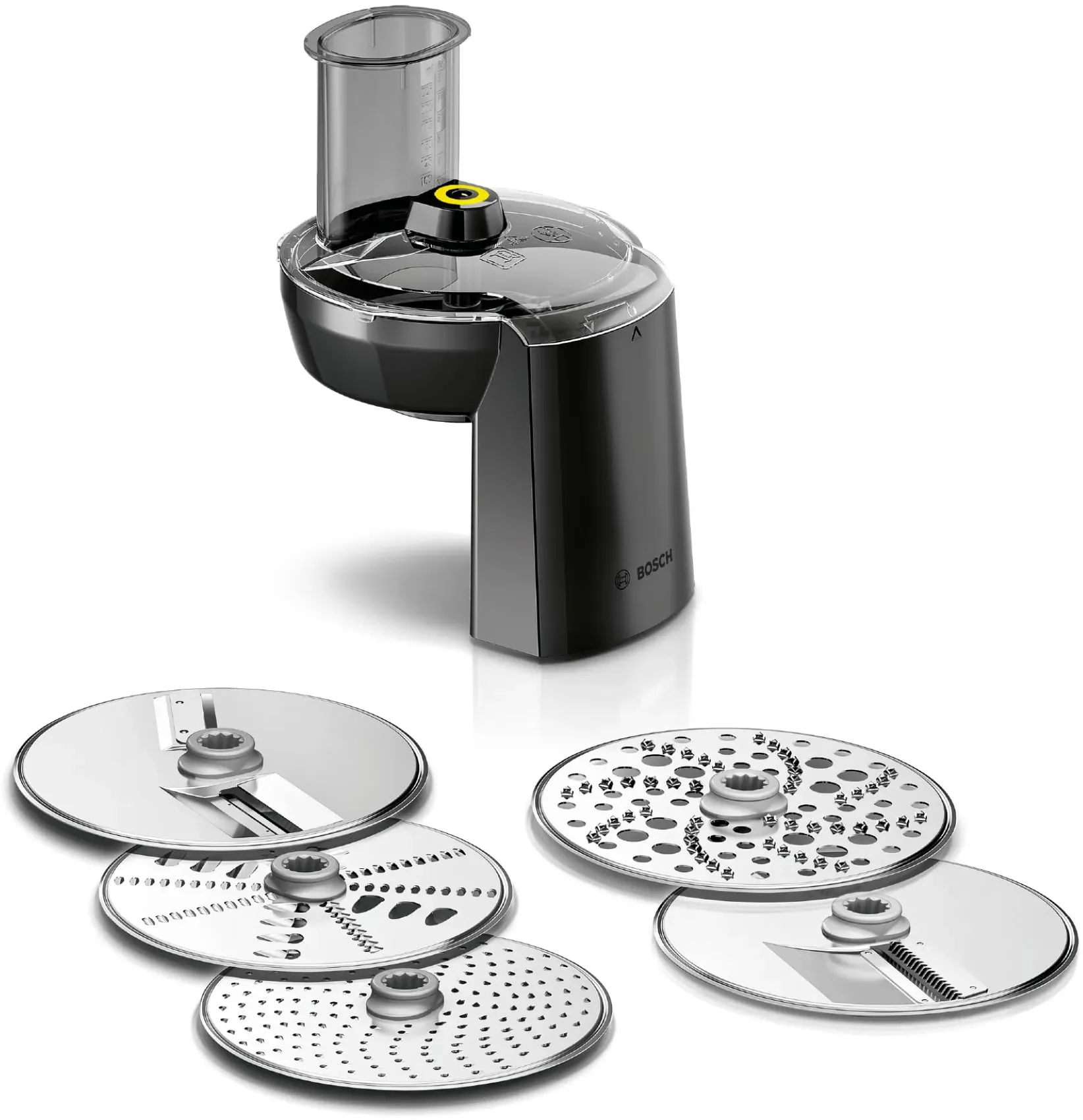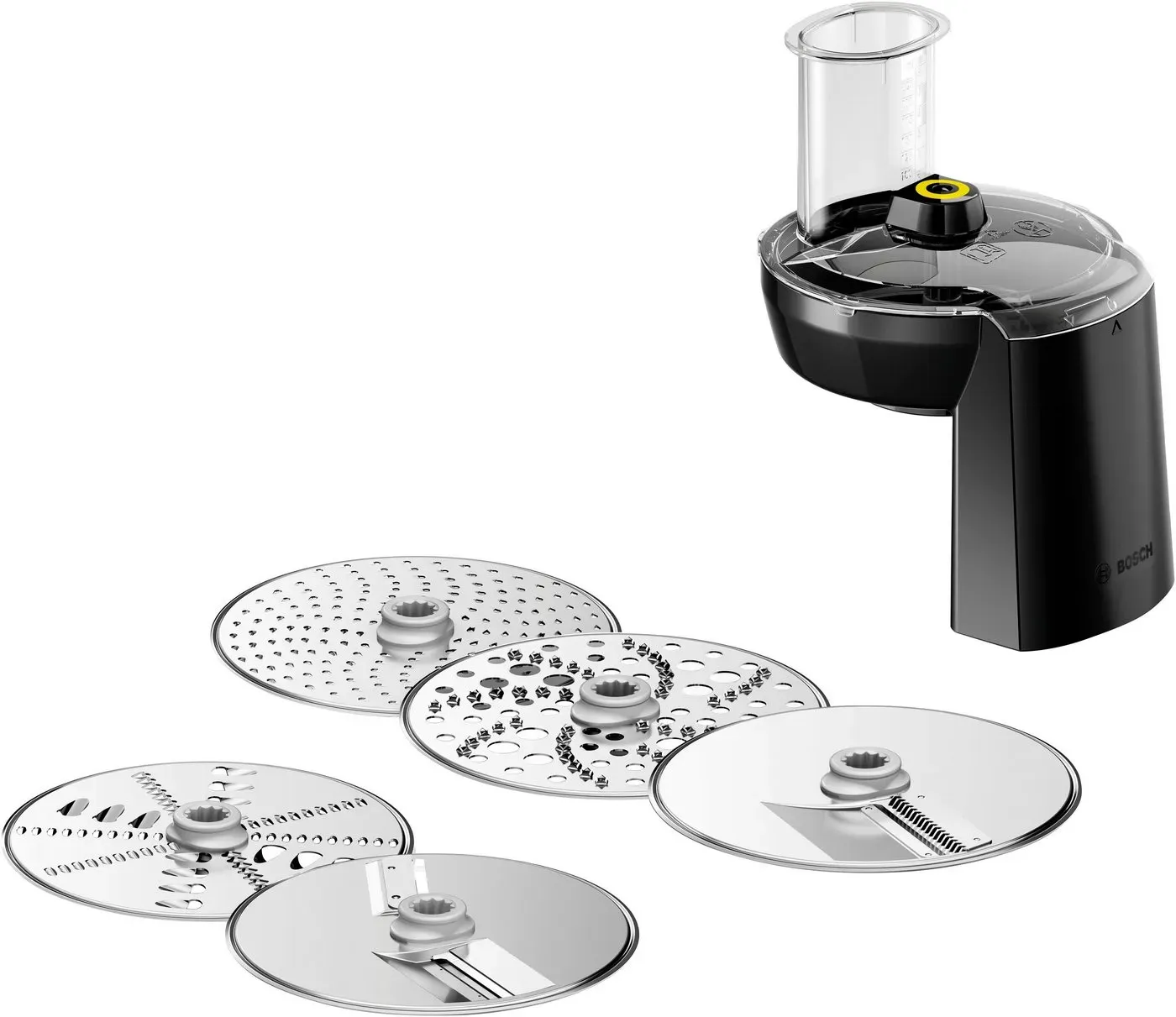 Auf Lager Versand durch AmazonBosch Zubehör MUZS68VL, VeggieLove Set, Durchlaufschnitzler, 5 Scheiben, Raspeln, Schneiden, Reiben, für Küchenmaschine Serie 6, Serie 8, schwarz/edelstahl
