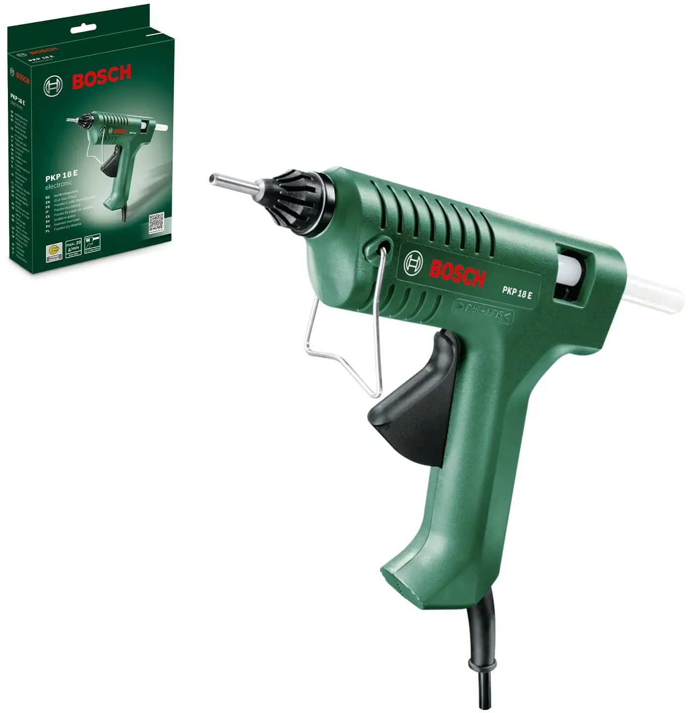 2 Händlerangebote bei billiger.de - Kategorie: Heißklebepistolen - Bosch - Die Klebepistole PKP 18 - der handliche Alleskleber Klebt problemlos Kartonage, Holz, Leder, Papier, Kork, Textil, Stein aber auch Metall und Glas Feinfühliges Dosieren und gezieltes zügiges Auftragen dank mechanischem Vorschub Sicherheit beim Arbeiten durch die Düse mit Hitzeschutzmantel Lieferumfang: PKP 18 E, 1 extralange Düse, 1 Stick Schmelzkleber (3165140078481) - GTIN:3165140687911 Bueroshop24 hat die Bosch PKP 18 E für 27.92 Euro im Angebot, was eine gute Option für preisbewusste Käufer ist. ![]() BOSCH PKP 18 E Heißklebepistole grün