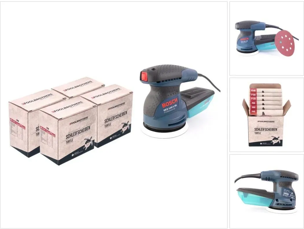 ![]() ![]() Bosch Professional Bosch gex 125-1 ae Exzenterschleifer 250 Watt 125 mm ( 0601387500 ) + 4x Toolbrothers turtle Schleifset