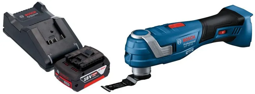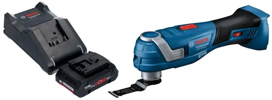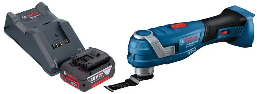 Kategorie: Multifunktionswerkzeuge - Bosch - GTIN:4059952606835 - # Komfortabler Allrounder: oszillierendes Multifunktionswerkzeug mit Starlock Plus und Vibration Control Das Bosch Professional Akku-Multifunktionswerkzeug GOP 18V-34GOP ist mit bürstenlosem Motor und pantentierten Snap-In-Arretiersystem ausgestattet. Sie können die Messer in Sekundenschnelle und ohne weitere Werkzeuge wechseln und laufe nicht Gefahr, Ihren Befestigungsstift zu verlieren. Starke Vibrationen von Oszillationswerkzeugen sind sehr unangenehm. Die Vibration Control reduziert deutlich die Vibrationen 50 % weniger im Vergleich zum Vorgänger und stellt sicher, dass Sie reibungslos arbeiten kannst und weniger ermüdest. Dank des schmalen Griffumfangs von nur 180 mm hast du die perfekte Kontrolle über dein Werkzeug und maximalen Komfort bei der Arbeit. Dieses Werkzeug haben wir für ein breites Anwendungsspektrum entwickelt. Es ist ideal für Tauchschnitte, zum Zuschneiden und zum Schleifen von Holz. Du kannst es auch zum Schneiden von PVC oder Metall, zum Entfernen von Mörtel zwischen Fliesen oder sogar zum Abkratzen von Rückständen verwenden. Kompatibel mit allen Starlock und Starlock Plus Zubehören. Kompatibel mit dem Bosch Professional 18V System und mit der markenübergreifenden AMPShare Akku-Allianz. Schutz gegen Verbrennungen an den Fingern: Das Getriebegehäuse ist gut isoliert und Sie können Messer kontaktfrei wechseln, ohne dass Sie heißes Zubehör anfassen müssen. Den Hebel für den Messerwechsel ... Ein ausgewogenes Paket mit einem Akku und Ladegerät, ideal für Anwender, die ein sofort einsatzbereites Gerät wünschen. ![]() ![]()