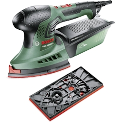 4 Händlerangebote bei billiger.de - Kategorie: Deltaschleifer - Bosch - Der Schleifer PSM 200 AES der vielseitige und leichte Alleskönner Ideal zum Bearbeiten von Ecken, Kanten und mittelgroßen Flächen mit der dreieckigen Schleifplatte Effizientes Schleifen größerer Oberflächen mit der rechteckigen Schleifplatte Materialgerechtes und komfortables Arbeiten durch stufenlose Drehzahlvorwahl und vibrationsarmen 200 W Motor Lieferumfang: PSM 200 AES, rechteckige Schleifplatte, Schleifpapier K80 (bügeleisenform), Multischleifpapier K80 (rechteckig), Koffer - GTIN:0793518381487 ![]() ![]() Bosch Schwingschleifer PSM 200 AES, 200 W, 182 x 92mm/142 x 92mm, mit Zubehör und Koffer