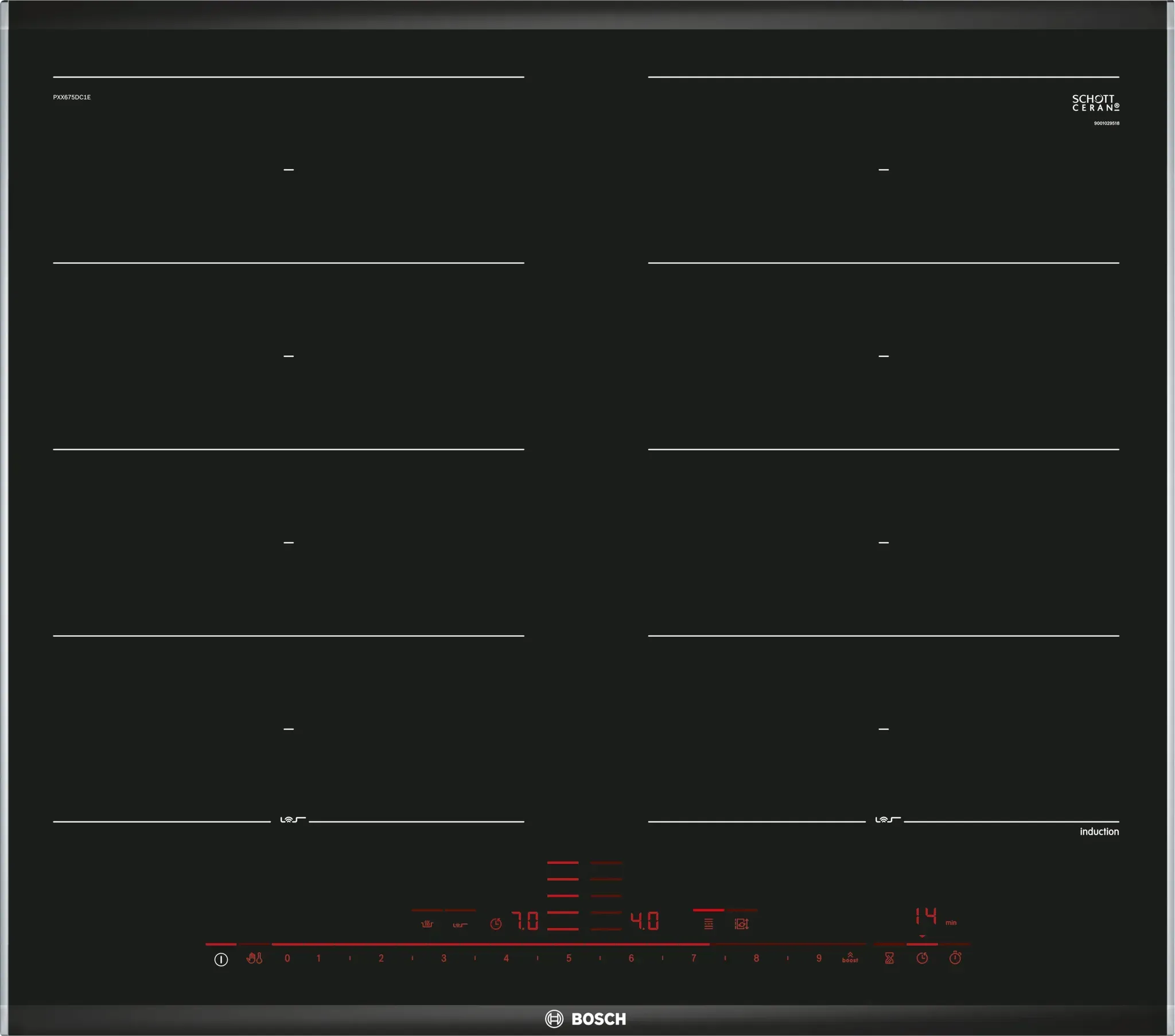 Bosch - EAN: 4242002848969 - Bosch Induktionskochfeld PXX675DC1E | 60 cm | FlexInduction | 4 Kochzonen | PowerBoost | PerfectFry | Schwarz - bei smartgoods.de - aus Yadore Produktdaten Computeruniverse.net bietet das Kochfeld zu einem attraktiven Preis an, was es zu einer soliden Wahl macht. ![]() Bosch PXX675DC1E Einbau-Induktionskochfeld Glaskeramik autark 60cm schwarz