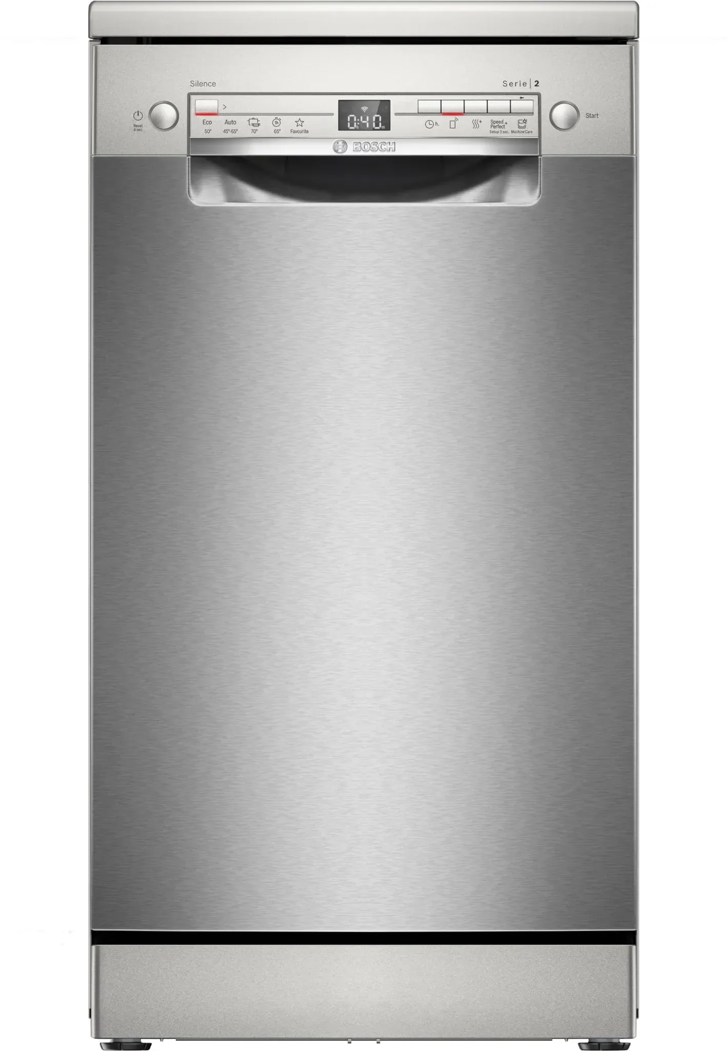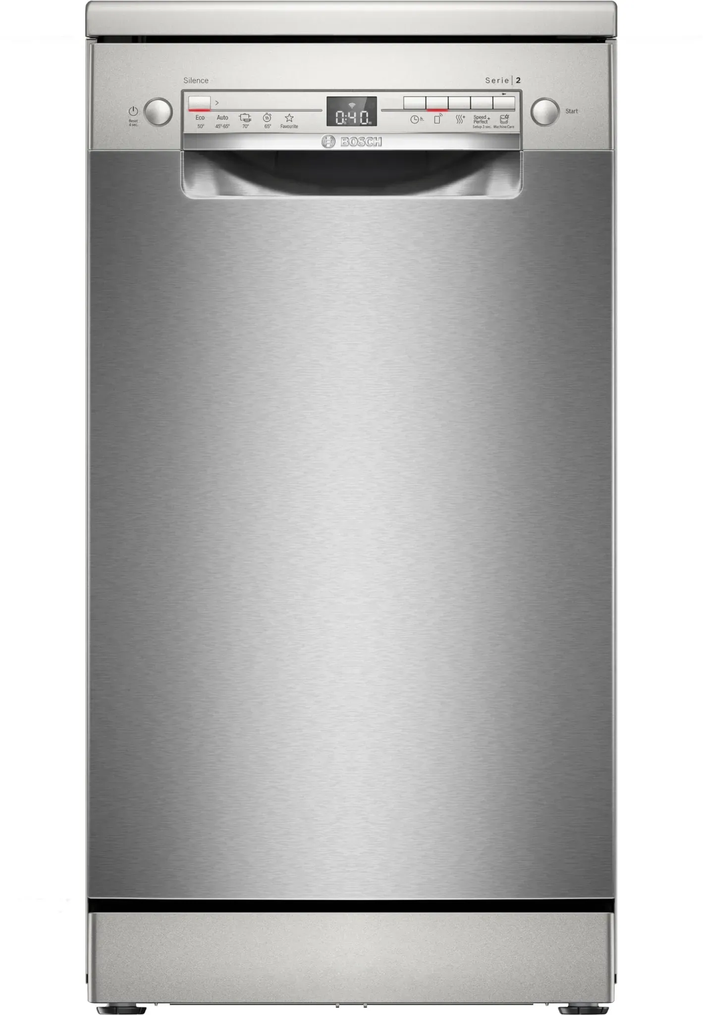 21 Händlerangebote bei billiger.de - EEK: E - Kategorie: Geschirrspüler - Bosch - Perfekt für kleine Küchen: Der freistehende Geschirrspüler mit 45 cm Breite passt sich flexibel je nach Platzangebot an. Dank des Anti-Fingerprint-Systems bleibt die Spülmaschine fingerabdruckfrei Ein ruhiges und sauberes Zuhause: Mit der Silence on Demand-Funktion, aktivierbar per App, kannst du deinen Geschirrspüler bei Bedarf für bis zu 30 Minuten nahezu geräuschlos laufen lassen Optimale Trocknung leicht gemacht: Mit der Extra Trocknen Funktion, per Tastendruck aktivierbar, erhält selbst schwer zu trocknendes Geschirr ein perfektes Trocknungsergebnis in deiner Spülmaschine Einfache Bedienung, perfekte Leistung: Nutze die Favoritenfunktion deines Geschirrspülers für häufig genutzte Programme und profitiere vom Automatikprogramm um Wasser, Zeit und Energie zu sparen HomeConnect, die intelligente Lösung für deinen Haushalt: Lass dich vom Programmassistenten unterstützen, erhalte Benachrichtigungen und steuere deinen Geschirrspüler ganz einfach sogar von unterwegs - GTIN:4242005415946 ![]() ![]() Bosch Serie 2 SPS2HMI42E Silber