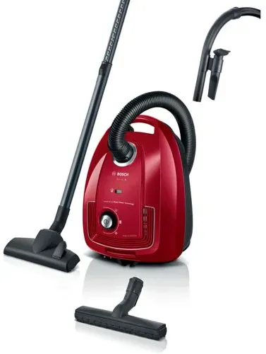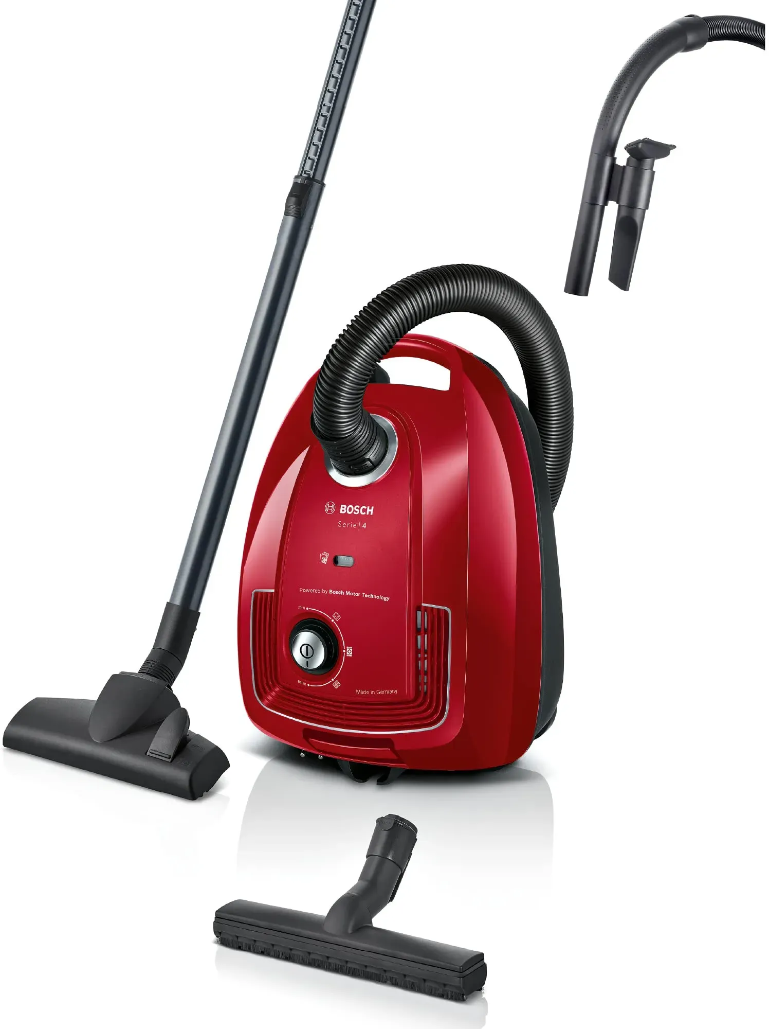 Auf Lager Versand durch AmazonBosch Hausgeräte Staubsauger mit Beutel Serie 4 BGD38RD1H, nachhaltig, Hygiene-Filter, 10 Jahre Motorgarantie, Hartbodendüse, Zubehör-Clip, Polsterdüse, Fugendüse, hohe Saugkraft, 600 W, rot