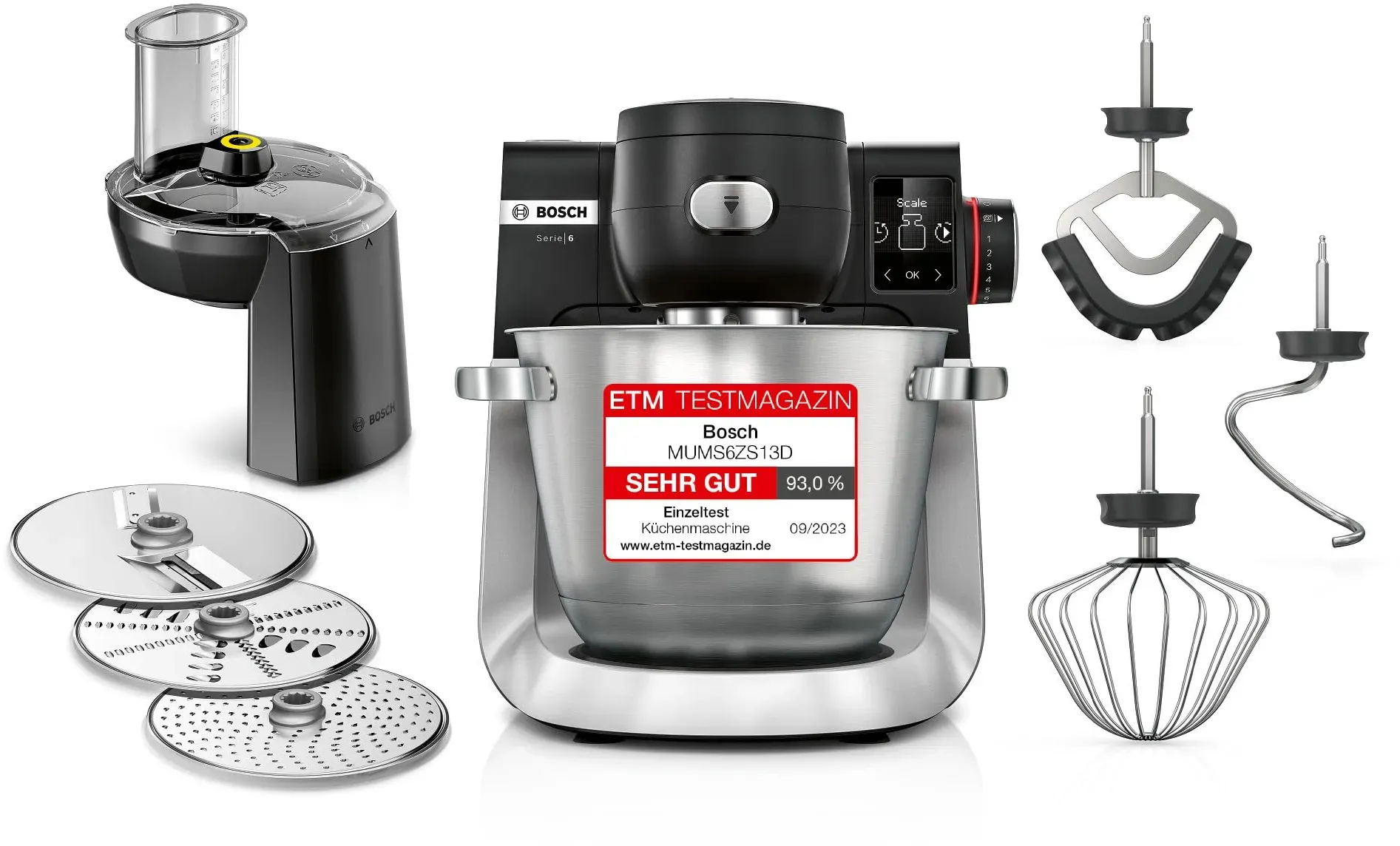 Zustand: Neu - Küchenmaschinen - Bosch - MUMS6ZS13D - EAN: 4242005424726 - ideale Ergebnisse: extrem starker 1,600 Watt Motor - auch für sehr schwere Teige und große Mengen geeignet Präzision automatisch: ideale Ergebnisse dank sensorgesteuerten Automatikprogrammen Aufs Gramm genau: integrierte Waage mit 1g-Schritten Wie von Hand geknetet: Das 3D PlanetaryMixing System knetet den Teig wie per Hand Extra große, gebürstete 5,5l Edelstahlschüssel: ideal für die Zubereitung großer Teigmengen, wie 3,5kg Kuchenteig, auf einmal - bei Amazon.de ![]() ![]() Bosch MUM Serie 6 MUMS6ZS13D Jet black matt