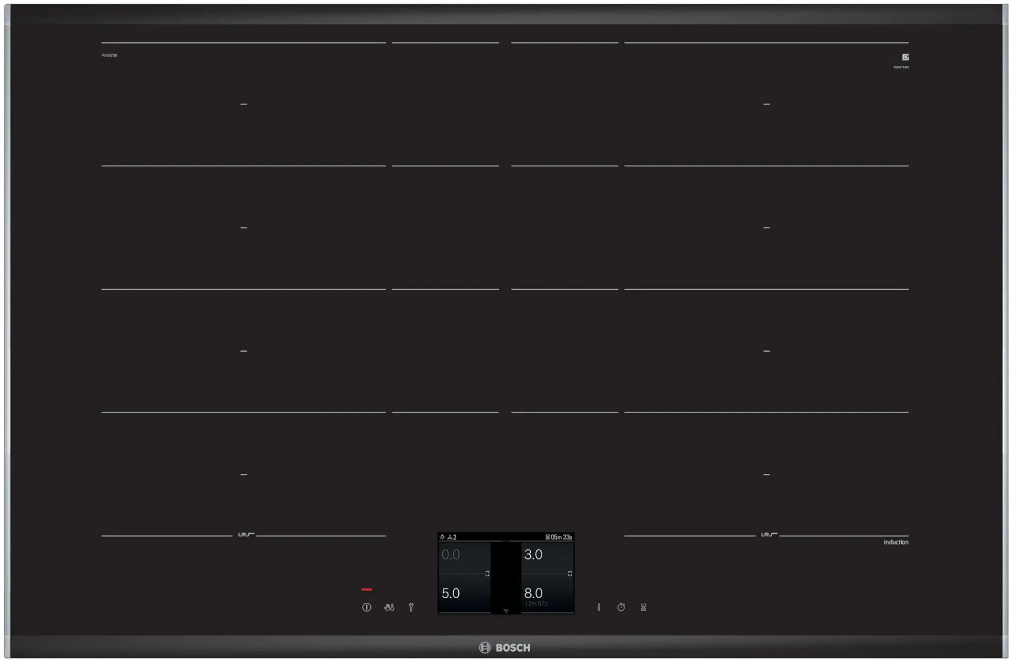 Auf Lager Versand durch AmazonBosch PXX675DC1E Serie 8 Induktionskochfeld (autark), 60 cm breit, FlexInduction Kochzonen verbinden, MoveMode voreingestellte Leistungsstufen, Bratsensor, PowerBoost schnelleres Kochen, Schwarz