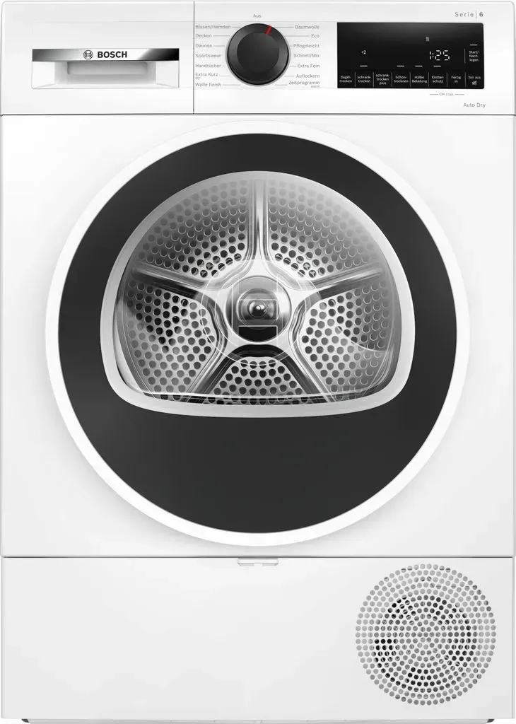 Zustand: Gebraucht - Top Brands Home Appliances - Bosch Bosch Hausgeräte - WQB245B40 - EAN: 4242005364275 - Von der Stiftung Warentest als GUT mit der Note 2,5 ausgezeichnet (Ausgabe 09/2025), Lizenz-Nummer 25QK13, im Test: 16 Kondensationswäschetrockner, 10x gut, 2x, befriedigend, 4x ausreichend) Selbstreinigender Kondensator: Reinigt sich während des Trocknens automatisch bis zu viermal, bleibt dauerhaft flusenfrei und sorgt so für gleichbleibend hohe Energieeffizienz Auto Dry: Intelligente Sensoren messen Temperatur und Feuchtigkeit, stoppen den Trocknungsprozess rechtzeitig und liefern ideal bügelfeuchte, schranktrockene oder extratrockene Wäsche Smart Dry: Waschmaschine und Trockner kommunizieren direkt miteinander und wählen automatisch das optimale Trockenprogramm - für optimale Ergebnisse ohne zusätzlichen Aufwand Smart Start: Startzeit automatisch optimieren - nutzt Strom dann, wenn er am günstigsten oder am umweltfreundlichsten ist, für effizienten Betrieb und nachhaltige Ergebnisse - 22 Händler im amazon.de Marketplace ![]() ![]() Bosch Serie 6 WQG2450R10 Wärmepumpentrockner (9 kg)