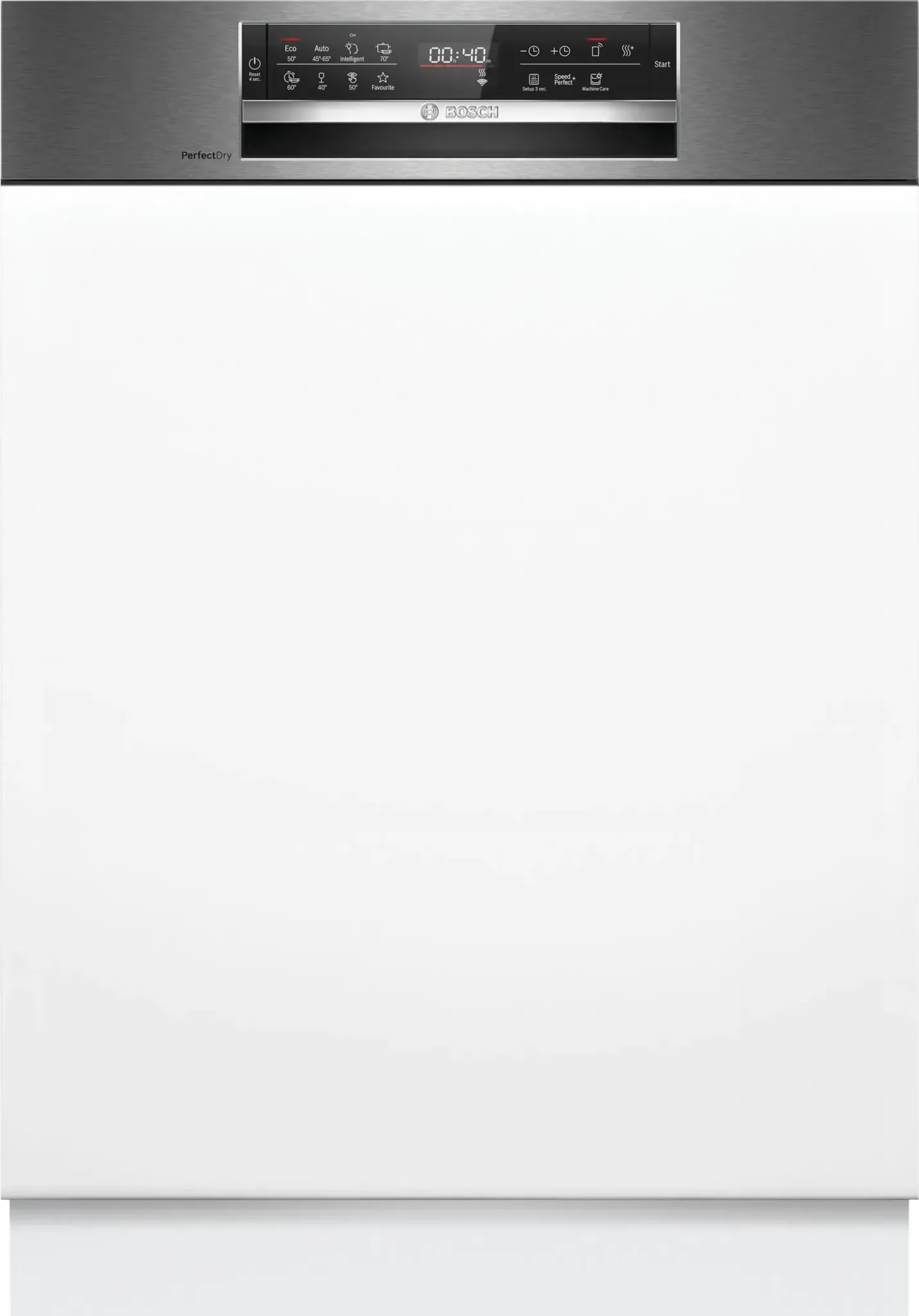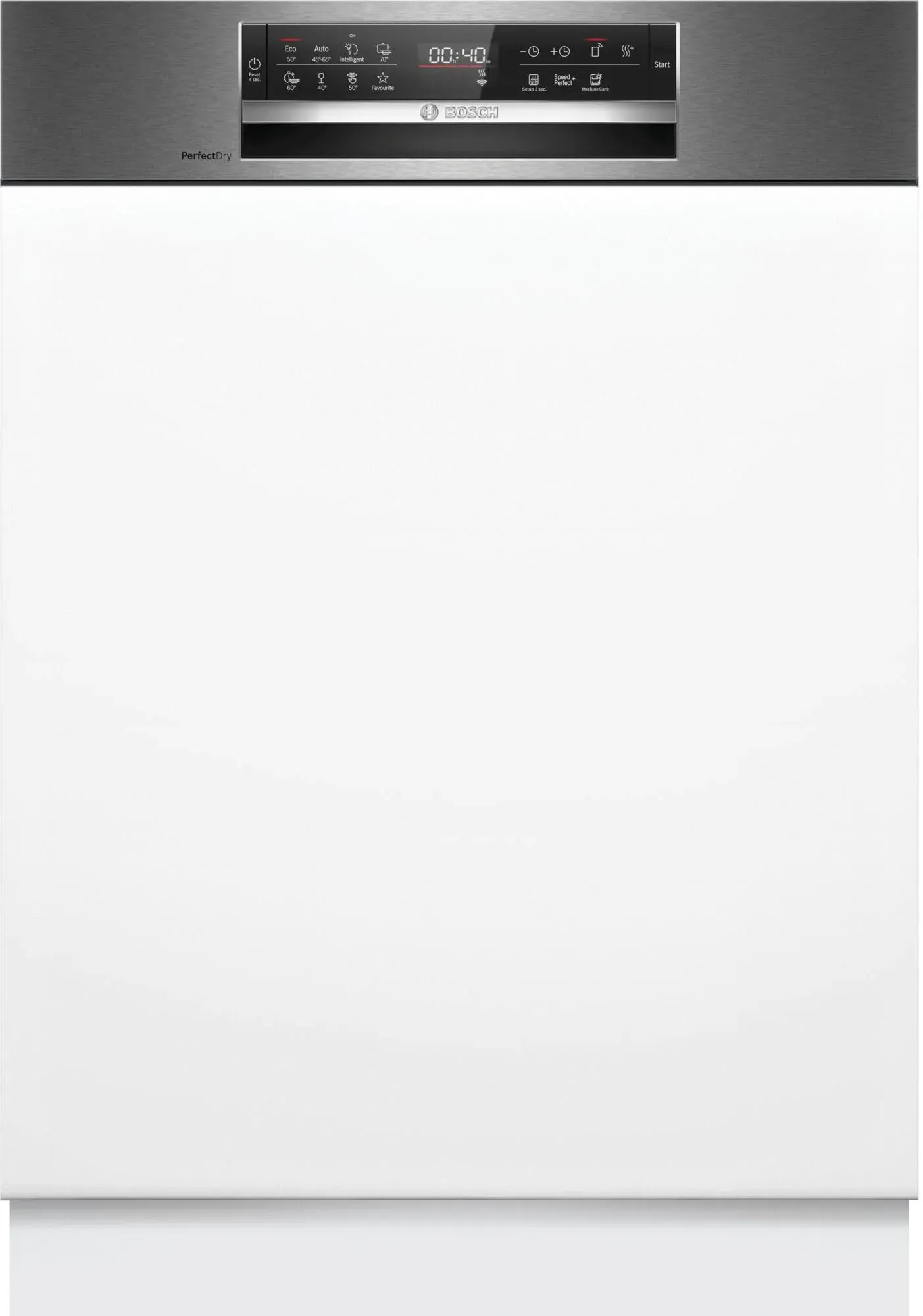 Bosch - EAN: 4242005420643 - ARTIKELBESCHREIBUNG Bosch SMI6ZCS16E, Teilintegrierter GeschirrspülerHighlights - Geben Sie über die HomeConnect App Ihr Feedback zu dem Spül- und Trocknungsergebnis - das Intelligent Programm passt den nächsten Spülzyklus auf Ihre Bedürfnisse hin an. - PerfectDry: perfekte Trocknung bei einem niedrigen Stromverbrauch - selbst bei schwer trocknendem Geschirr. - Max Flex Körbe: flexible und komfortable Beladung deines Geschirrspülers, mit leicht laufenden Rollen. - Programm Download: über die Home Connect App kannst du dir zusätzliche Programme herunterladen, die du für deine tägliche Anwendungen benötigst. - Hygienelevel bestätigt für das Eco 50 C Programm und ein noch höheres Hygienelevel im Intensiv 70 C und Maschinenpflegeprogramm. - Extra Clean Zone: besonders gründliche Reinigung im Oberkorb. Leistung und Verbrauch B Energie / Wasser : 65 kWh / 9 Liter Fassungsvermögen: 14 Maßgedecke Programmdauer: 3:35 (h:min) Geräusch: 40 dB(A) re 1 pW Geräusch- Geräusch im Silence-Programm: 39 dB(A) re 1 pW Programme und Optionen 8 Programme: Eco 50 C, Auto 45-65 C, Intelligent, Intensive 70 C, Express 60 C, Glas 40 C, Silence 50 C, Favorit Vorspülen 4 Sonderfunktionen: Fernstart, Extra Trocknen, IntensivZone, SpeedPerfect+ Maschinenpflege-Programm Add-On Funktion über die Home Connect App: HygienePlus, Silence on Demand Display Programmablaufanzeige Spültechnologie und Sensorik Perfect Dry (Zeolith-Trocknung) Wärmetauscher Aquasensor Dosier Assistent ... ![]() BOSCH teilintegrierbarer Geschirrspüler 'SMI6ZCS16E', Energieeffizienz: B (A-G), silber (weiß), B:59,8cm H:81,5cm T:57,3cm, Geschirrspüler