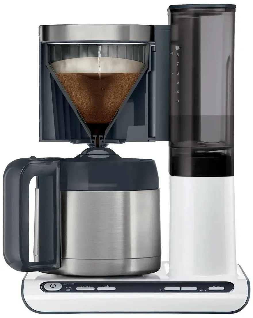 Kategorie: Kaffeemaschinen - Bosch - GTIN:4242005216369 - Kraftvolles Heizsystem: ideale Brühtemperatur für volles Aroma, Thermokanne für längeren Genuss Aroma Sensor: optimales Brühen auch bei kleinen Mengen Brühzeit wird automatisch angepasst Abnehmbarer Wassertank: einfach und schnell direkt unter dem Wasserhahn zu befüllen Timer: aufwachen zum Geruch von frischem Kaffee. Brühen startet automatisch zur ausgewählten Zeit Edelstahl-Thermokanne: doppelwandige Kanne für längeren Genuss von aromatischem, heißem Kaffee - 97,20 Euro bei Amazon Marketplace Kitchen - gefunden von billiger.de ![]() ![]() Bosch TKA8A681 - Filterkaffeemaschine Styline eBay Kaffeemaschine Thermokanne 1,1 L