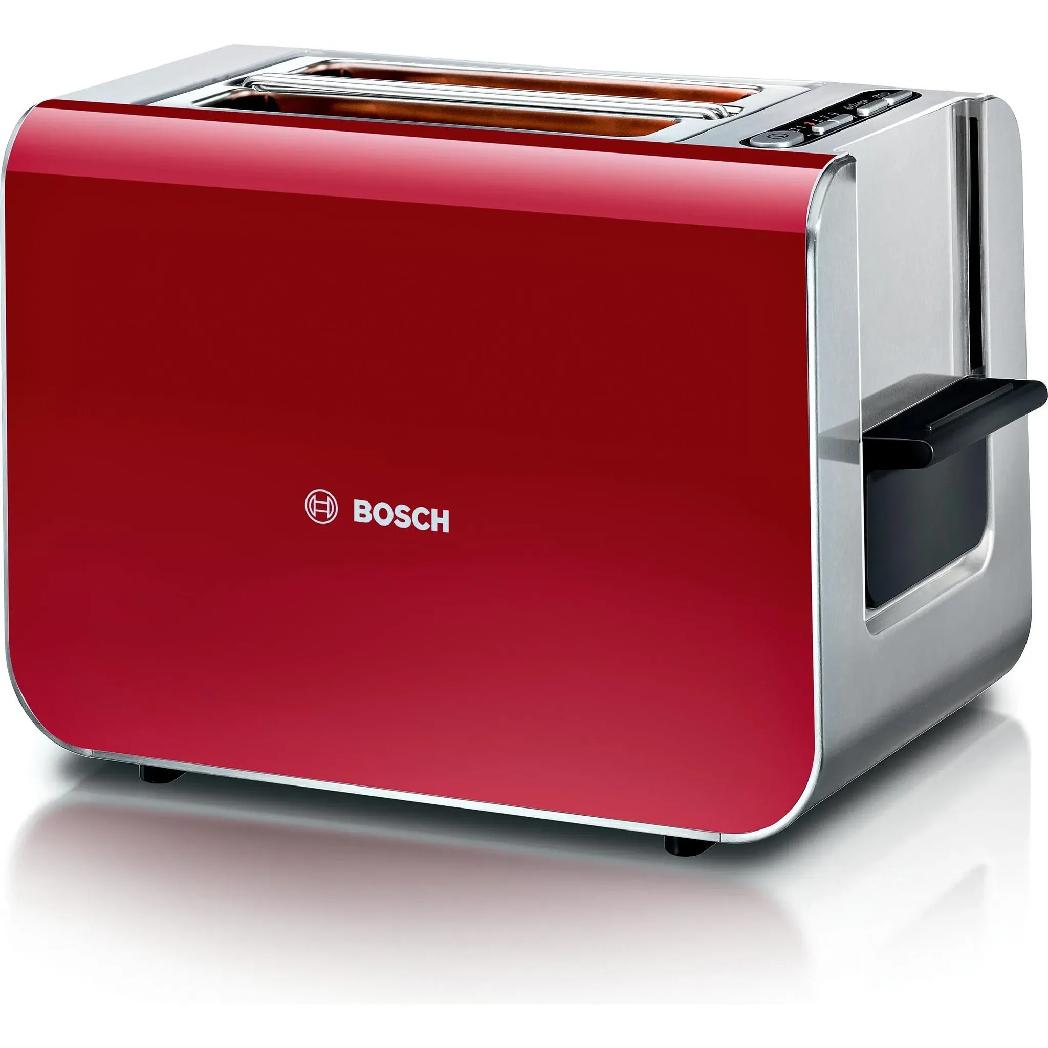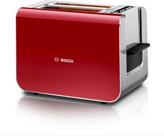 13 Händlerangebote bei billiger.de - Kategorie: Toaster - Bosch - - Integrierter und versenkbarer Brötchen-Aufsatz: Toaste mehr Gebäck auf dem vielseitigen und stabilen Brötchen-Aufsatz. - Auftau- und Aufwärmfunktion: taut deinen Toast auf und röstet ihn knusprig. - Automatische Brotzentrierung: setzt den Toast mittig und sorgt für ein gleichmäßiges Röstbild. - High Lift: auch kleine Scheiben Brot ganz einfach entnehmen. - IndividualRoast Selection: neun Röststufen für den individuellen Genuss und unterschiedlichste Brotsorten. Bosch TAT8614N, 2 Scheibe(n), Rot, Edelstahl, Tasten, LED, 860 W Bosch TAT8614N. Anzahl der Scheiben: 2 Scheibe(n), Produktfarbe: Rot, Gehäusematerial: Edelstahl. Leistung: 860 W, AC Eingangsspannung: 220-240 V, AC Eingangsfrequenz: 50/60 Hz. Kabellänge: 1,05 m, Breite: 313 mm, Tiefe: 170 mm Kompakt Toaster Styline Rot - GTIN:4242005504855 ![]() ![]() BOSCH TAT8614N - Toaster Edelstahl eBay 2 Scheiben Brötchenaufsatz 860 W