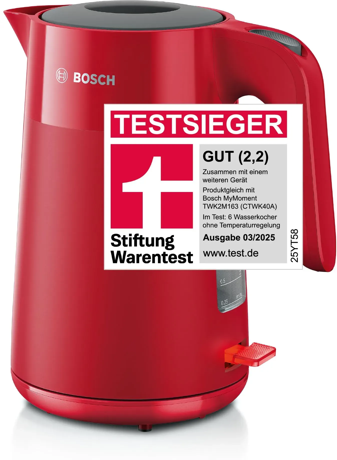 Verfügbarkeit: Lieferzeit 5-7 Werktage - Kategorie: Wasserkocher - Bosch - GTIN:4242005397631 - €¢ Wasserkocher für 1,7l, 2400W Leistung €¢ Tassenanzeige: hilft, Energie und Zeit zu sparen €¢ Entnehmbarer und leicht zu reinigender Kalkfilter €¢ Leicht ablesbare Wasserstandsanzeige €¢ Abschaltautomatik, Trockengeh- und überhitzungsschutz sowie Lift-Switch-off - 37,90 Euro bei Cyberport - gefunden von billiger.de Der rote Wasserkocher von Cyberport bietet eine weitere Farboption mit der gewohnten Qualität. ![]() ![]() Bosch TWK2M164 Wasserkocher 1,7 L MyMoment rot