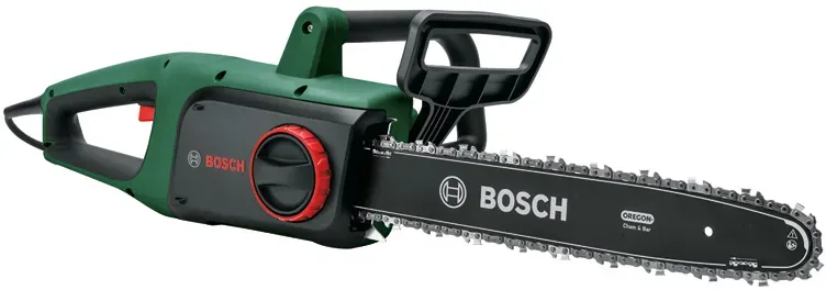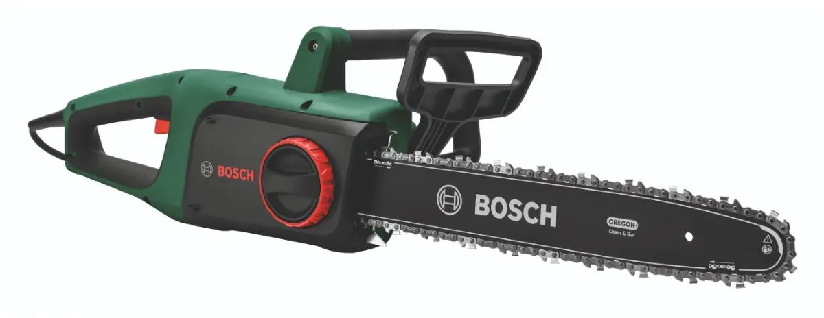 Kategorie: Kettensägen - Bosch - GTIN:4059952608174 - Die handliche und einfach zu bedienende Elektro-Kettensäge UniversalChain 40 von Bosch verfügt über einen leistungsstarken 1.800 W Motor mit einer Kettengeschwindigkeit von 12 m/s und sorgt damit für schnelle Schnitte. Die Elektro-Kettensäge hat ein Gewicht von 4,3 kg, überzeugt durch ein ergonomisches Design und ist auf optimalen Benutzerkomfort ausgelegt. Das patentierte SDS-System von Bosch ermöglicht ein werkzeugloses und einfaches Spannen und Warten der Kette. Die UniversalChain 40 verfügt über einen seitlich ausgerichteten ölbehälter, wodurch ein einfaches Nachfüllen des automatisch arbeitenden Kettenschmiersystems ermöglicht wird. Mit einer stabilen Rückschlagbremse zum wirkungsvollen Stoppen der Kette ist für die erforderliche Sicherheit gesorgt. Die Elektro-Kettensäge ist perfekt zum Sägen von Baumstämmen, dicken ästen und kleinen bis mittelgroßen Bäumen geeignet. - 124,00 Euro bei BAUHAUS - gefunden von billiger.de Dieses Angebot von Amazon.de ist eine Standardoption für die Kettensäge mit guten Spezifikationen. ![]() ![]()