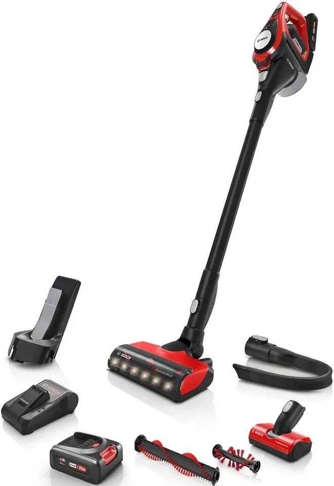 Auf Lager Versand durch AmazonBosch Akku-Staubsauger Unlimited 9 ProAnimal BKS941PET, kabellos, MicroClean Technology, Display, Staubkomprimierung, HEPA-Filtersystem, 10 J. Motorgarantie, 4Ah Akku, LED-Licht, Schnellladegerät, rot