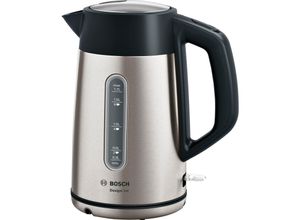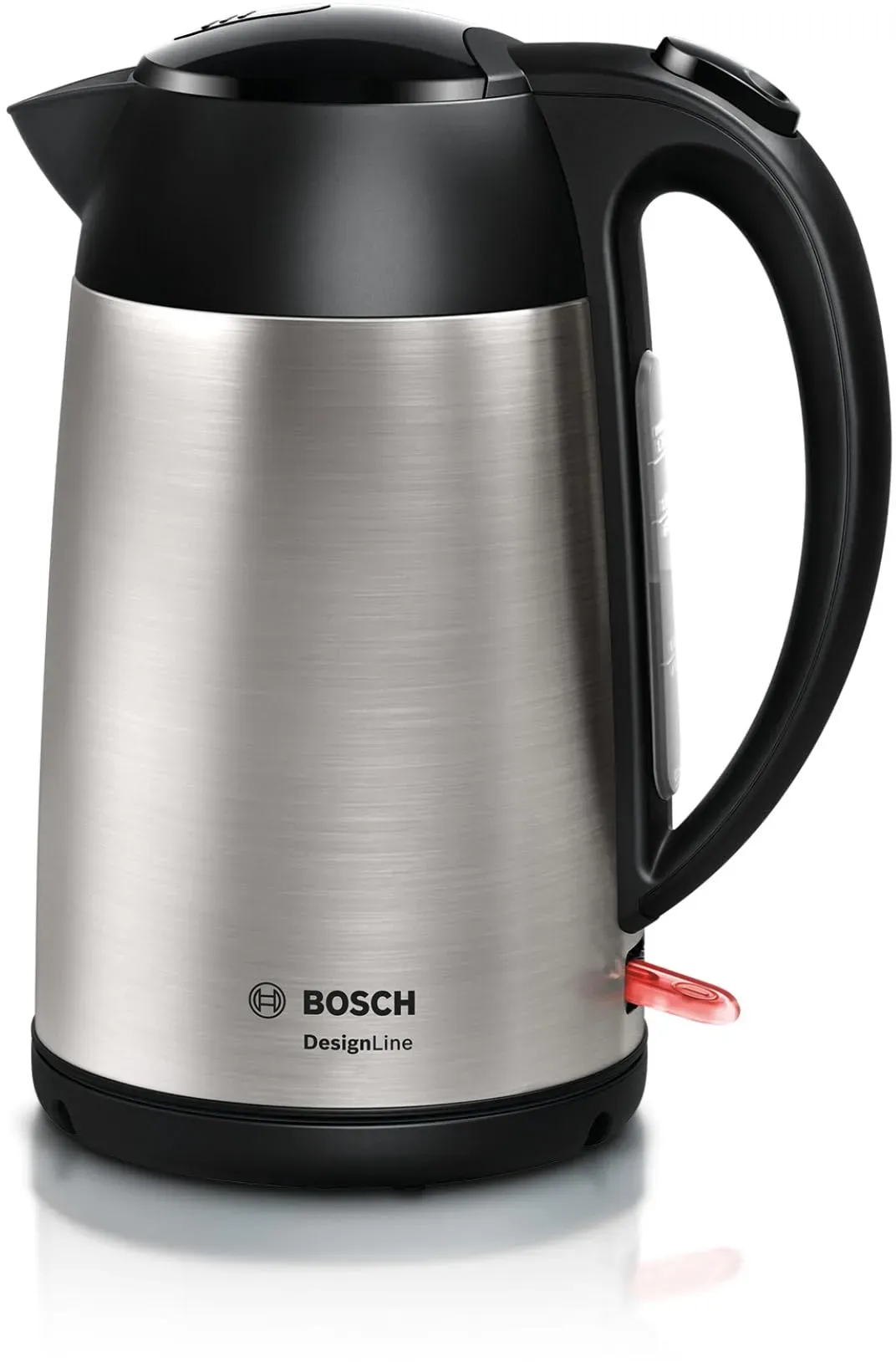 Auf Lager Versand durch AmazonBosch kabelloser Wasserkocher DesignLine TWK5P480, Ausgießen ohne Spritzer, Tassenanzeige, extra große Wasserstandsanzeige, Überhitzungsschutz, 1,7 L, 2400 W, Edelstahl