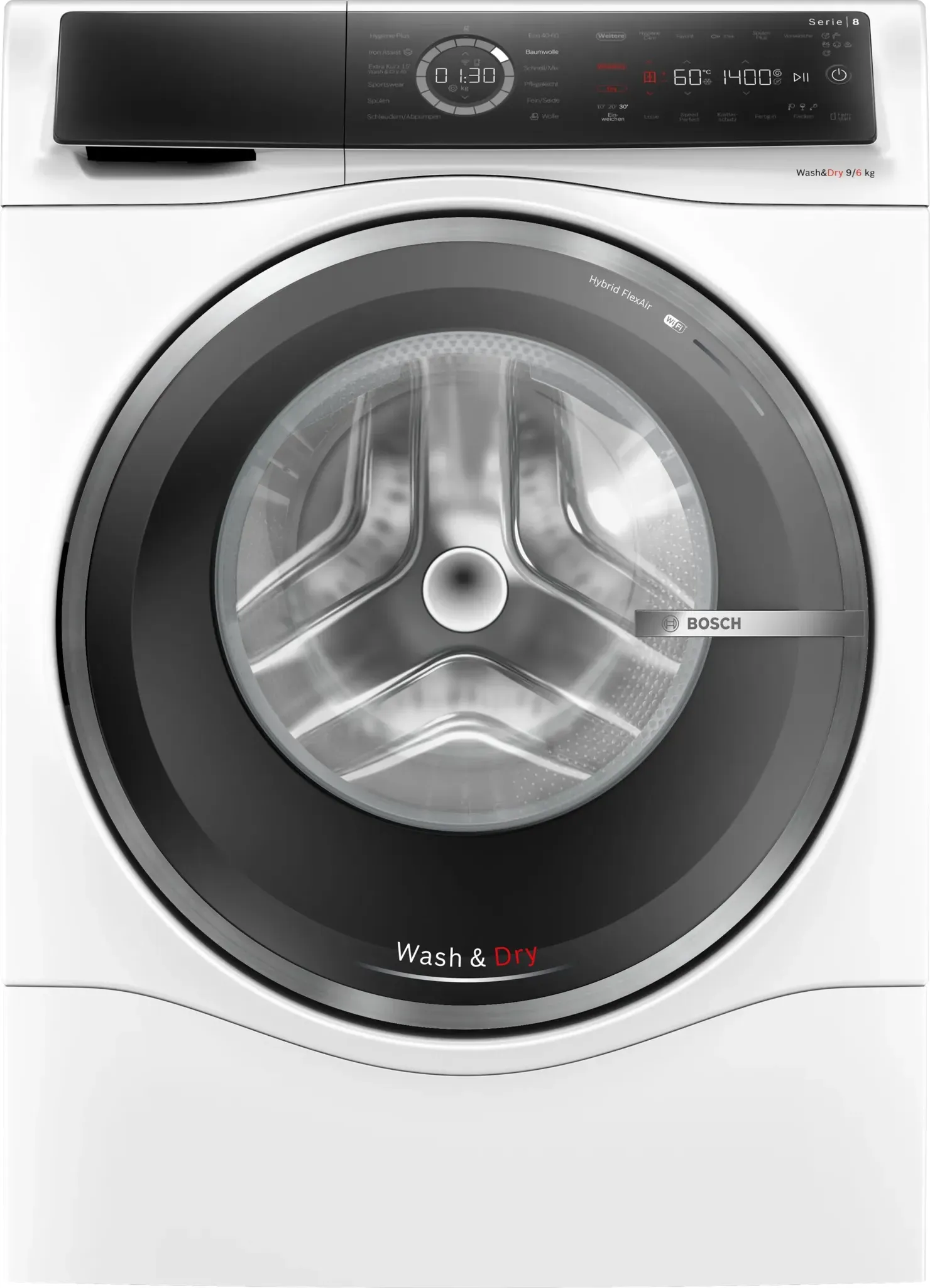 ![]() ![]() BOSCH Waschtrockner 8 WNC244070, 9 kg, 6 kg, 1400 U/min, Wash & Dry 45', AquaStop, Auto Dry, Fleckenautomatik, Home Connect weiß