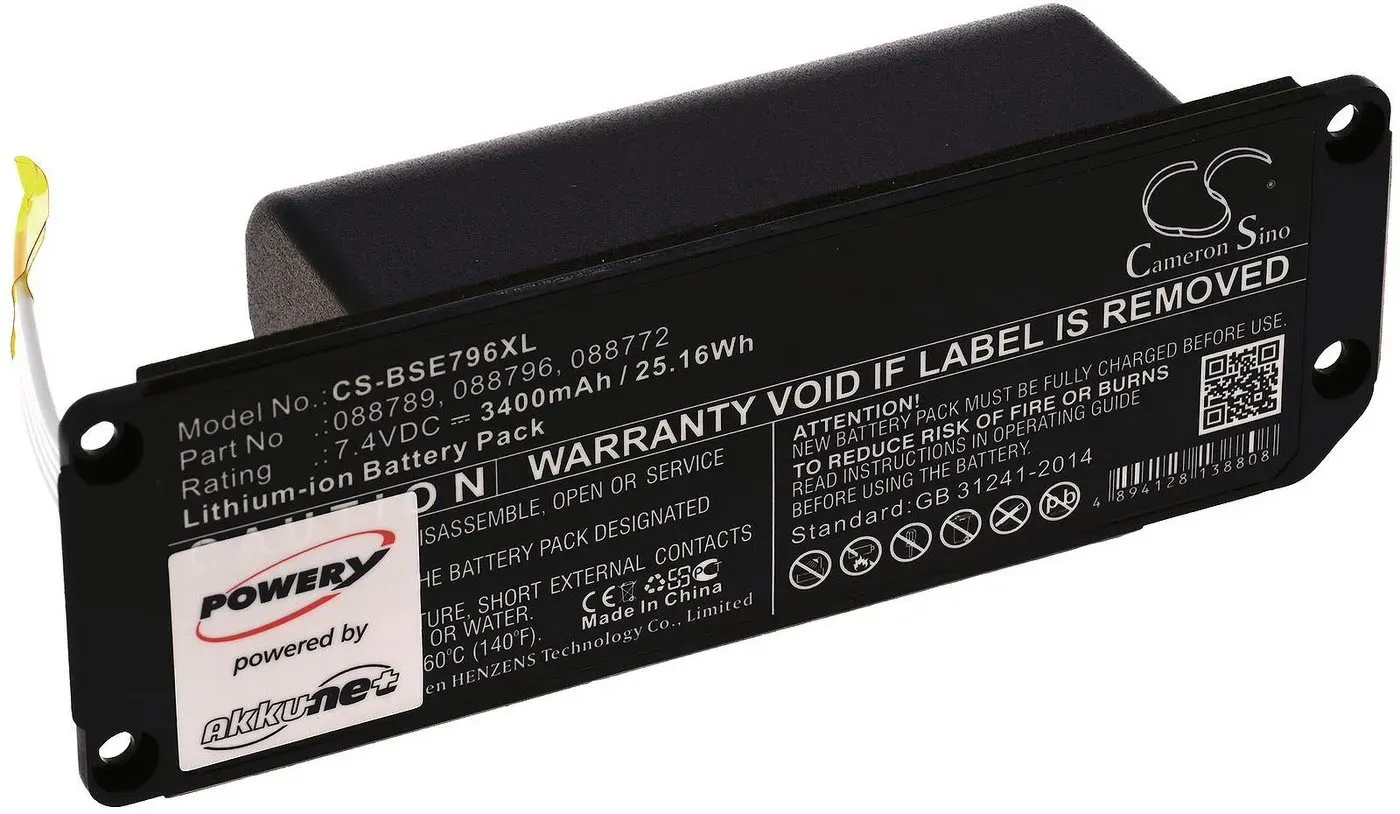 Elektroinstallationen & Smart Home Netzteile & Stromversorgung Batterien Wiederaufladbare Batterien & Akkus Sonstige - EAN:4069099721490 - vhbw - the clever way - Hochwertiger und kompatibler Wechsel-Akku mit hoher Kapazität für Lautsprecher und Boxen oder Ihren portablen Speaker (alle passenden Modelle finden Sie weiter unten) - Der Akku kann mit dem Standard- oder einem kompatiblen Ladegerät geladen werden - Unsere Akkus und Batterien erfüllen alle betriebssicherheitsrelevanten Vorgaben LIEFERUMFANG: - 1x Akku inkl. Leiterplatte TECHNISCHE DATEN: - Technologie: Li-Ion - kein Memory-Effekt - Kapazität: 3400 mAh - Spannung: 7,4 V - Nennenergie: 16 Wh - Anzahl der Zellen: 2 - Gewicht: 161 g - Maße (L x B x H): 11 x 3,8 x 4,5 cm Für eine gesicherte Kompatibilität prüfen Sie bitte, ob Ihr momentan verwendeter Akku aufgelistet ist. ERSATZ FÜR: - Bose 088789, 080841, 088772 vhbw - Hochwertige Qualität bei Ersatzteilen und Zubehör. Für eine lange Lebensdauer Ihrer Elektrogeräte. - gefunden von Kelkoo Der Powery XXL-Akku mit 3400 mAh bietet eine maximale Laufzeit und ist ideal für intensive Nutzung. ![]() ![]()