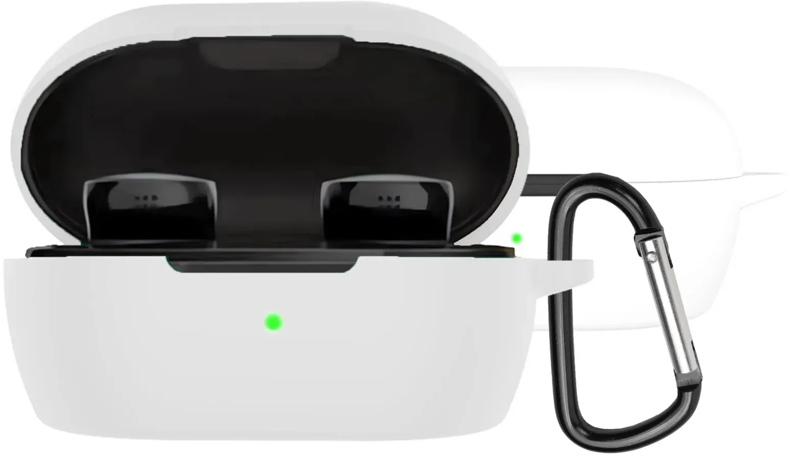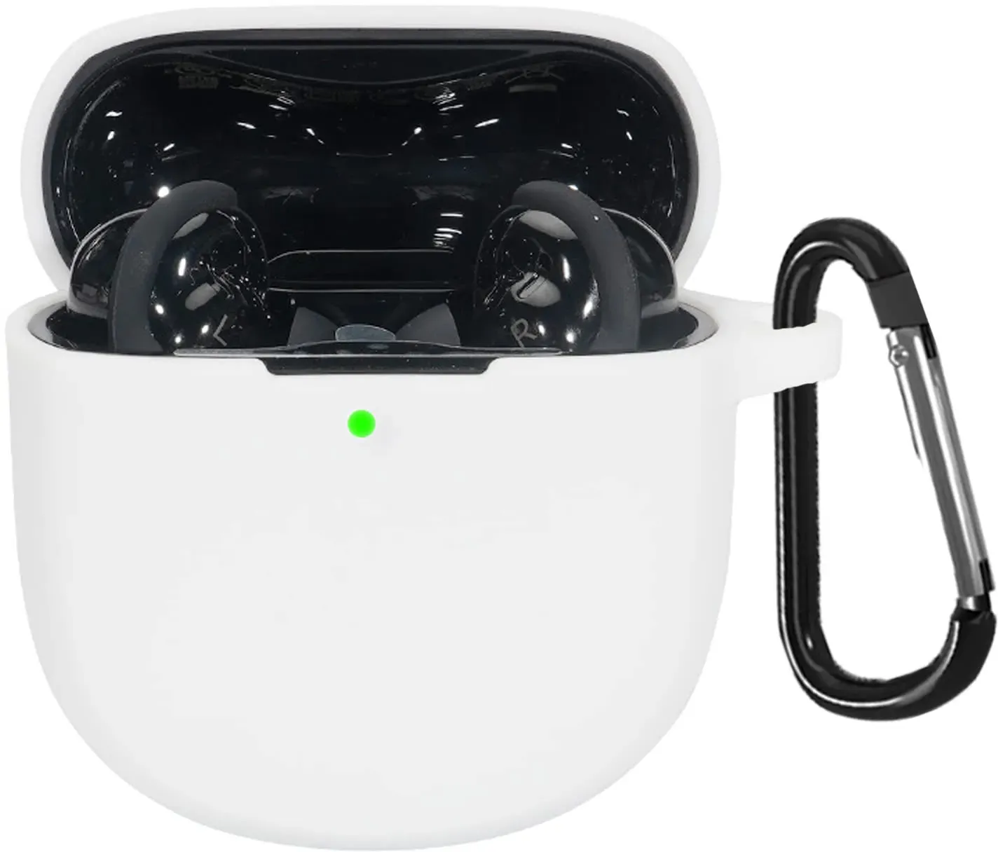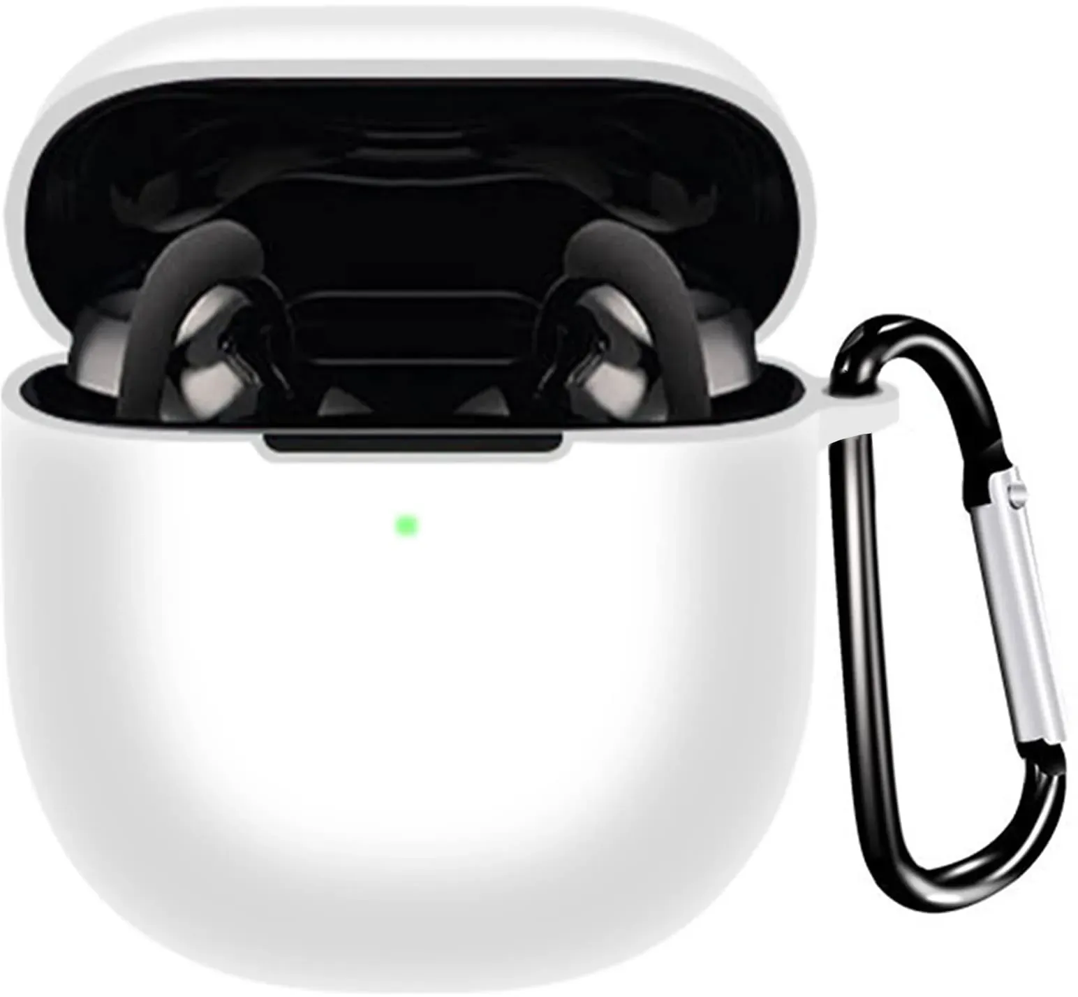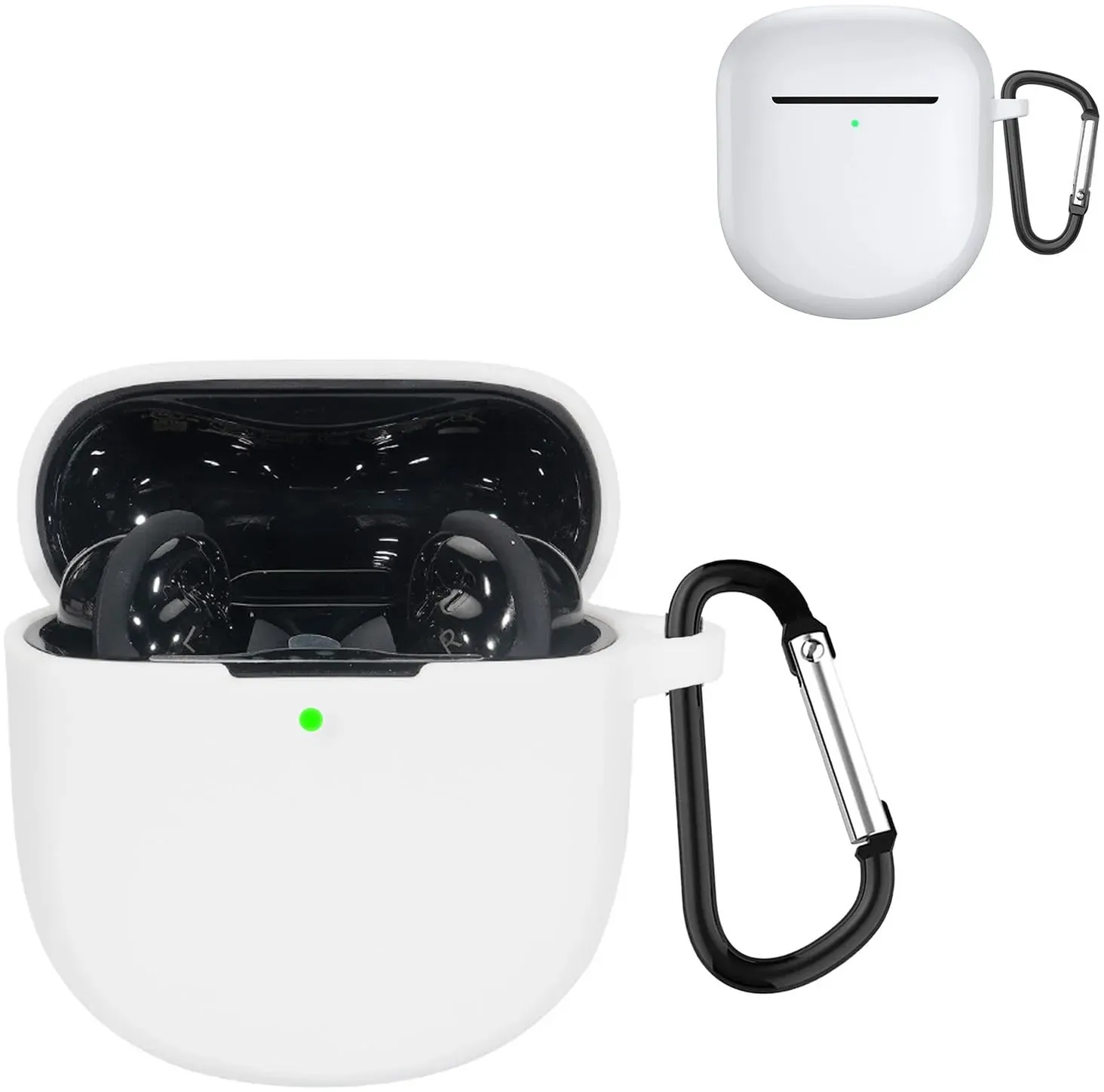 Auf Lager Versand durch AmazonMiimall Schutzhülle Kompatibel mit Bose QuietComfort Earbuds II Hülle mit Karabiner, [Vordere LED Sichtbar] Leicht Silikon Stoßfest Schutz Case für Bose QuietComfort Earbuds 2 2022-Weiß