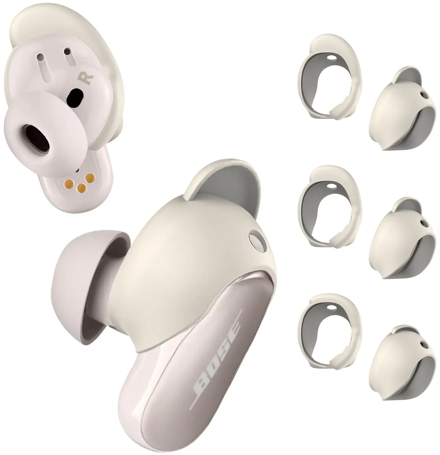 Auf Lager Versand durch AmazonAdhiper QC/Sport Silikon Ohrstöpsel kompatibel mit Bose QuietComfort/Bose Sport Kabellose In-Ear-Kopfhörer,S M L 3 Größen 3 Paar Silikon-Ersatz-Ohrstöpsel(Weiß)