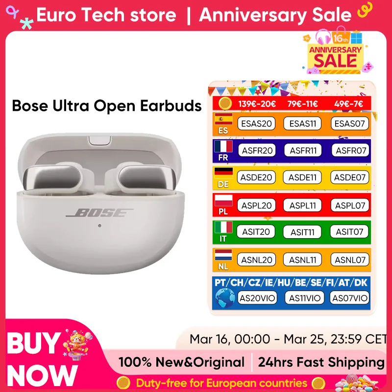Der angezeigte Preis könnte seit dem letzten Update gestiegen sein - Bose Ultra Open Earbuds OpenAudio-Technologie Offenes Design In-Ear-Ohrhörer Kabellose Ohrhörer Bis zu 48 Stunden Akkulaufzeit IPX4 BT5.3 - Zustand: NEW - bei Aliexpress DE - gefunden von Buycentral Die "Diamond 60th Edition" für 243.44 Euro ist eine spezielle Edition, die für Sammler oder Liebhaber des Besonderen interessant sein könnte. ![]() ![]() Bose Ultra Open Earbuds Diamond 60th Edition