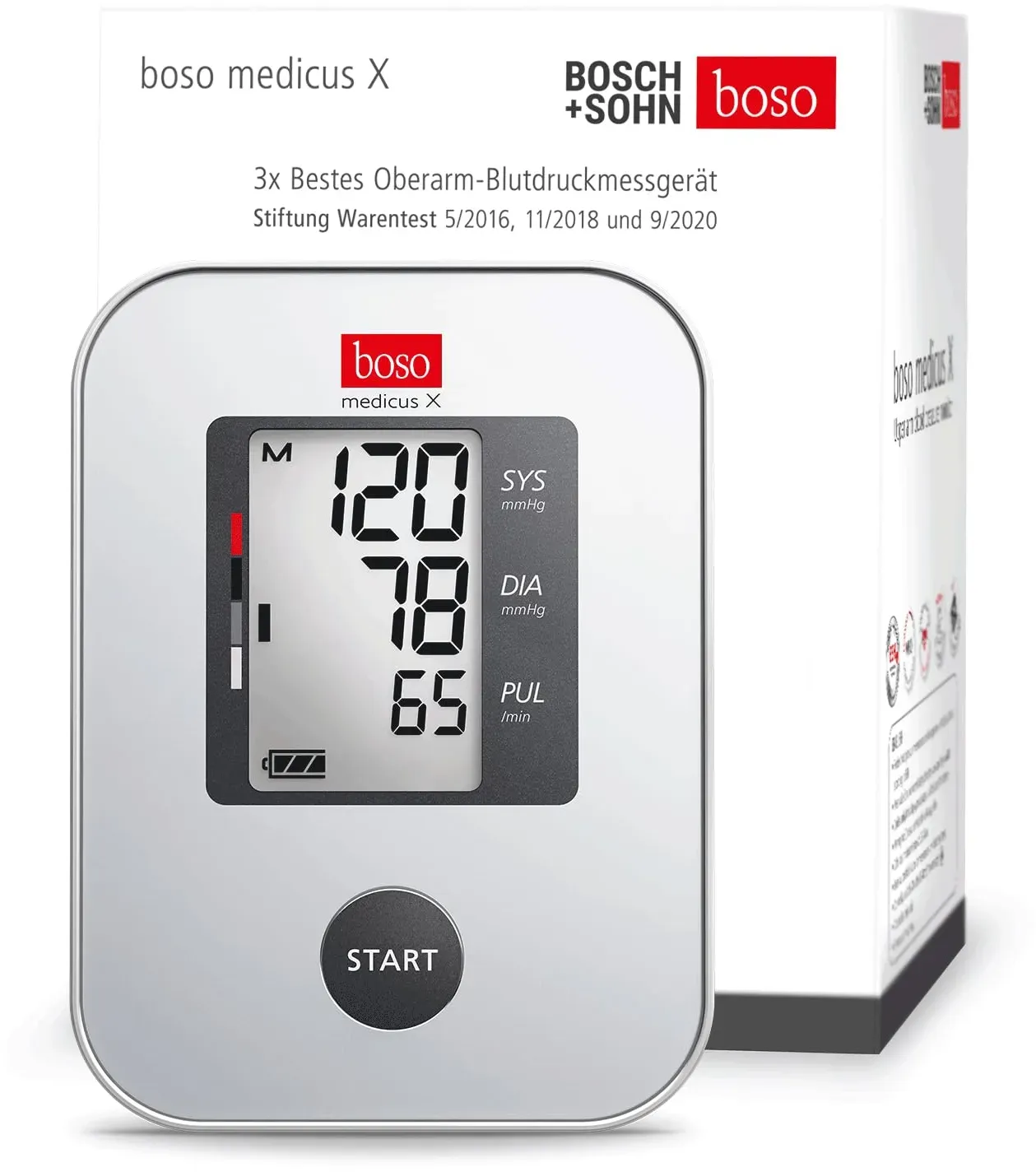 Zustand: Neu - Digitale Oberarm-Blutdruckmessgeräte - boso Bosch + Sohn GmbH & Co. - Boso Medicus X - EAN: 4002427047701 EAN: 4002427004773 - PZN-10271361 1 St freiverkäuflich Hinweis: Dieses Produkt enthält Batterien. Bitte beachten Sie die gesetzlichen Verpflichtungen zur Entsorgung und Rücknahme von Elektro- und Elektronikgeräten und Batterien für Endverbraucher. Entsorgung und Rücknahme von Elektro- und Elektronikgeräten und Batterien https://www.aponeo.de/informationen/rechtliches/informationen-zum-batteriegesetz/ - bei Amazon.de ![]() ![]() Boso Medicus X Oberarm XL
