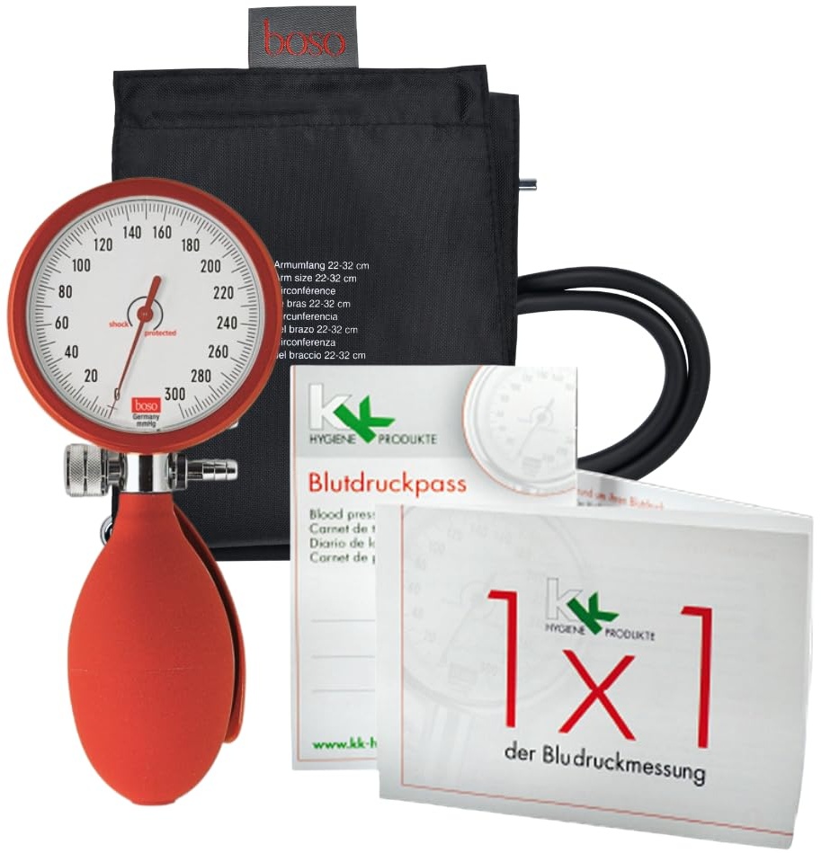 Kategorie: Blutdruckmessgeräte - Boso - GTIN:4260266640990 - Manometer-Skala = 60 mm Doppelschlauch-System Steckanschluss für Manschette mit Drehventil zum Druckablasssen mit Shock Protektion-Technik - 51,31 Euro bei Amazon Marketplace Health & Personal Care - gefunden von billiger.de Ein umfassendes Paket mit einem Boso Clinicus II in Schwarz, inklusive Blutdruckpass und Anleitung zur Blutdruckmessung. ![]() ![]() boso clinicus II mit Klettenmanschette 60 mm | inkl. KK Blutdruckpass + 1 x 1 der Blutdruckmessung (Schwarz)
