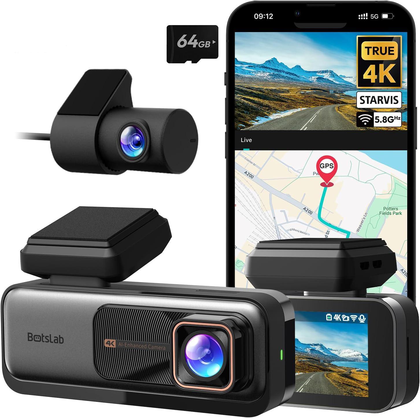 Auf Lager Versand durch AmazonBOTSLAB Dashcam Auto Vorne Hinten, 4K Dashcam Auto GPS mit WiFi, Dual Autokamera mit 64GB SD Karte, ADAS, Nachtsicht, 170°Weitwinkel, WDR, 2,45" IPS, 24/7 Parküberwachung, Loop-Aufnahme