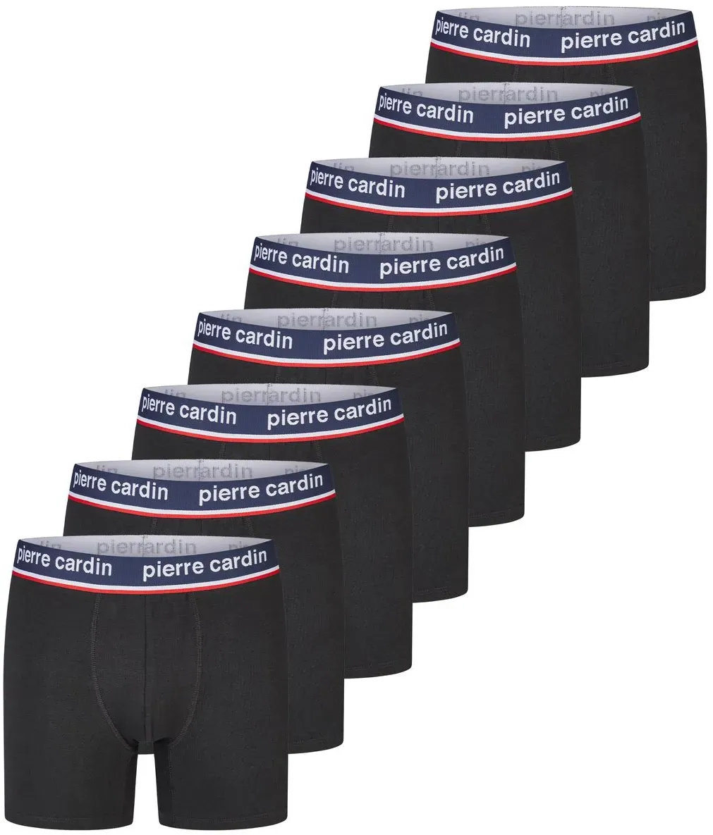 Kategorie: Herrenunterhosen - Pierre Cardin - GTIN:3614002035068 - Pierre Cardin Boxershorts Herren 8er-Pack Pierre Cardin Männer Basic Boxer ohne Eingriff im 8er-Pack hat ein angenehmes Tragegefühl durch den hohen Baumwollanteil. Der elastische Taillenbund sorgt für maximalen Tragekomfort und auch der Beinausschnitt ist so konzipiert, dass dieser in keiner Weise einschneidet. Es wurde bewusst auf störende Etiketten verzichtet. Als besonderer Eyecatcher dient der Bund mit Logodruck am Hosenbund. Stückzahl: 8 (4x2) Größen: M, L, XL, XXL, 3XL, 4XL, 5XL Farben: Schwarz, Navy, Grau, Grün, Blau, Rot Material: 95% Baumwolle, 5% Elasthan Key Facts Verfügbar bis Größe 5XL Keine kratzenden Etiketten Kein Gummidruck durch das elastische Waistband Kein Einschneiden durch denn passgenauen Beinausschnitt Eyecatcher ist das mittig platzierte Pierre Cardin Logo am Hosenbund - 39,99 Euro bei DENIMFY - gefunden von billiger.de Dieses 7er-Pack von Ellesse bietet eine groÃ?e Auswahl an mehrfarbigen Boxershorts aus Stretchmaterial für eine ganze Woche. ![]()
