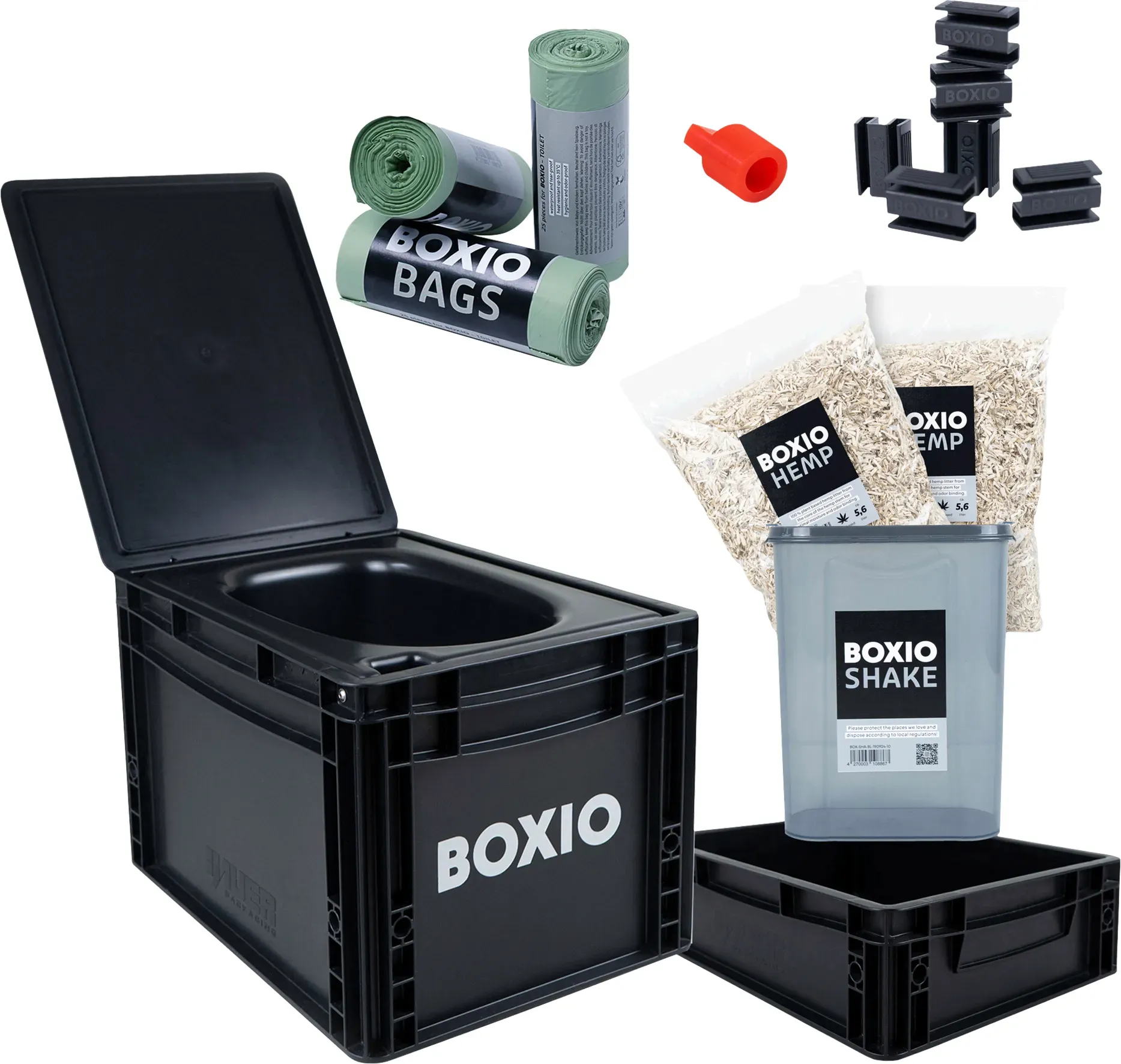 1 Händlerangebote bei billiger.de - Kategorie: Campingtoilette - boxio - Komplettpaket: BOXIO TOILET (Modell 2023) + Sitzerhöhung + Geruchsverschluss + 2x Hanfstreu + 2x Kompostierbare Müllbeute + 6x Halteclips Hohes Fassungsvermögen: Ganze 8-10 Toilettengänge schafft die Trockentrenntoilette, ehe eine schnelle und einfache Entsorgung nötig wird. Ganz ohne Chemie sorgenfrei beseitigen. Mobil: Die kleine kompakte Campingtoilette mit den Maßen L x B x H: 40 x 30 x 28 cm passt in jeden Bus, jedes Boot, den PKW-Kofferraum oder eine Gartenlaube. Die flexible Toilette für unterwegs. Hygienisch: Die nachhaltige Trenntoilette verfügt über einen 5,7 Liter Trennbehälter mit Deckel und einen auslaufsicherem Urinkanister. Kombiniert mit HANFSTREU und dem PLUG entsteht nahezu kein Geruch. Umweltfreundlich: Das Feste mit Beutel in die Mülltonne und das Flüssige einfach in den Gulli schütten. Du bist unabhängig von Entsorgungsstationen. Die gute Alternative zu Chemietoiletten. - GTIN:4262368960211 ![]() ![]() BOXIO - Toilet Max+: Campingtoilette Komplettset, Mobile Trockentrenntoilette ohne Chemie für Camping, Van, Outdoor, Dachzelt: Toilette auf Eurobox Basis ohne Strom für unterwegs, schwarz, 40x30x28