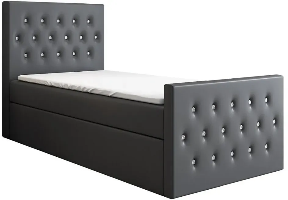 Kategorie: Betten - modfu - GTIN:7691275588428 - Elegant und Bequem Auf den ersten Blick fällt das Kopfteil ins Auge. Seine gleichmäßige Steppung und tiefe Heftung verleihen der Rückenlehne eine angenehme Tiefe. Speicherdesign Großer Bettkasten unterhalb des Lattenrosts mit viel Stauraum. An der Unterseite des Bettes ist ein Oxford-Tuch angebracht, um Staub fernzuhalten. Langlebige Qualität Um ein Verrutschen der Matratze zu verhindern, sind an den Lattenübergängen rutschfeste Streifen angebracht. Das reduzieren Schäden von Kanten. Starke Konstruktion Die Bettlatten bestehen aus hochwertigen Kiefernholz. Die Latten können die Verwendung der Matratze besser verlängern.Maxi-Tragfähigkeit : 330LBS Produktdetails(Bett)Gesamtabmessung : 203x101x110 cm (TxBxH)Kopfteilabstand : 25cmLiegefläche : 90x200 cmFarbe : Grau Netto-/Bruttogewicht : 39.5/41 KG Plattenmaterial : Massivholz+MetalMax.Benutzergewicht : 150KG/330LBS Innerer Stauraum : 83x133cmProduktdetails(Matratze)Gesamtabmessung : 90 x 200 x 25 cmAnzahl der Federn : 406 pcsNetto-/Bruttogewicht : 26 /28 KGPlattenmaterial : 100% PolyesterMenge der Paket: 3Hinweise :Aufgrund manueller Messdaten kann ein Fehler von 2-3 cm auftreten.Alle Produktbilder werden mit realen Produken aufgenommen, aber aufgrund des Einflusses der Sonnenstrahlung und anderer Faktoren kann es zu bestimmten Farbunterschieden kommen. - 429,99 Euro bei Kaufland.de - gefunden von billiger.de Dieses Boxspringbett LILI für 449 Euro bietet eine gute Ausstattung mit Bettkasten, Topper und gepolstertem Kopfteil. ![]() ![]() mebloland A&J MöbelLand GmbH Boxspringbett Einzelbett LILI mit Bettkasten, Topper und gepolstertem Kopfteil. (Boxspringbett mit Bettkasten und gepolstertem Kopfteil. Inclusive Topper., TOP ANGEBOT), Länge 216 cm Höhe 106 cm 100 cm x 200 cm