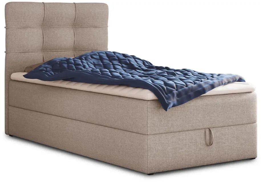 Kategorie: Betten - 4mybaby GmbH - GTIN:4058744842086 - Premium Komfort und Design: Erleben Sie das exklusive Boxspringbett Trinity K2 in verschiedenen Größen (70x200, 80x200, 90x200, 100x200 cm). Dieses stilvolle Polsterbett vereint Komfort mit Funktionalität und ist ideal für jedes Schlafzimmer. Mit einem robusten Bonellfederkern und einem praktischen Bettkasten bietet es nicht nur außergewöhnlichen Schlafkomfort, sondern auch wertvollen Stauraum für Bettzeug und persönliche Gegenstände. Stauraum für Ihr Schlafzimmer: Verabschieden Sie sich von Unordnung der integrierte Bettkasten im Boxspringbett bietet großzügigen Stauraum für Bettzeug und mehr. Perfekt für Ordnungsliebende, die Funktionalität schätzen. Ob Bett 100x200 mit Stauraum oder Boxspringbett 100x200 mit Bettkasten, dieses Bett schafft Platz und hält Ihr Schlafzimmer ordentlich. Der Bettkasten ist einfach zugänglich und ideal für kleinere Räume oder für zusätzlichen Stauraum ohne Kompromisse bei Stil und Komfort. Bequemes, gepolstertes Kopfteil: Das edel gepolsterte Paneel-Kopfteil sorgt für eine luxuriöse Optik und maximalen Komfort beim Sitzen oder Entspannen. Ideal für gemütliche Lesestunden oder zum Relaxen nach einem langen Tag. Genießen Sie Ihr Bett mit gepolstertem Kopfteil, das zusätzlichen Komfort und eine angenehme Atmosphäre bietet. Es unterstützt Ihre Wirbelsäule und lässt Ihr Schlafzimmer in einer Oase der Ruhe erstrahlen für erholsame Nächte und entspannte Momente. Erholsame Nächte mit Bonell H3 ... Dieses Boxspringbett GAMAL für 349 Euro ist ein Top-Angebot mit Bettkasten, Topper und gepolstertem Kopfteil. ![]() ![]() mebloland A&J MöbelLand GmbH Boxspringbett Einzelbett GAMAL mit Bettkasten, Topper und gepolstertem Kopfteil. (Boxspringbett mit Bettkasten und gepolstertem Kopfteil.Inclusive Topper !, TOP ANGEBOT), Länge 208 cm Höhe 106 cm