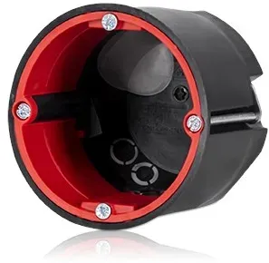 ![]() ![]() F-tronic Hohlwand Brandschutzdose für Holzbau, Feuerwiderstandsklasse EI90, mit TC-Krallen Befestigung (Tiefe 50mm)
