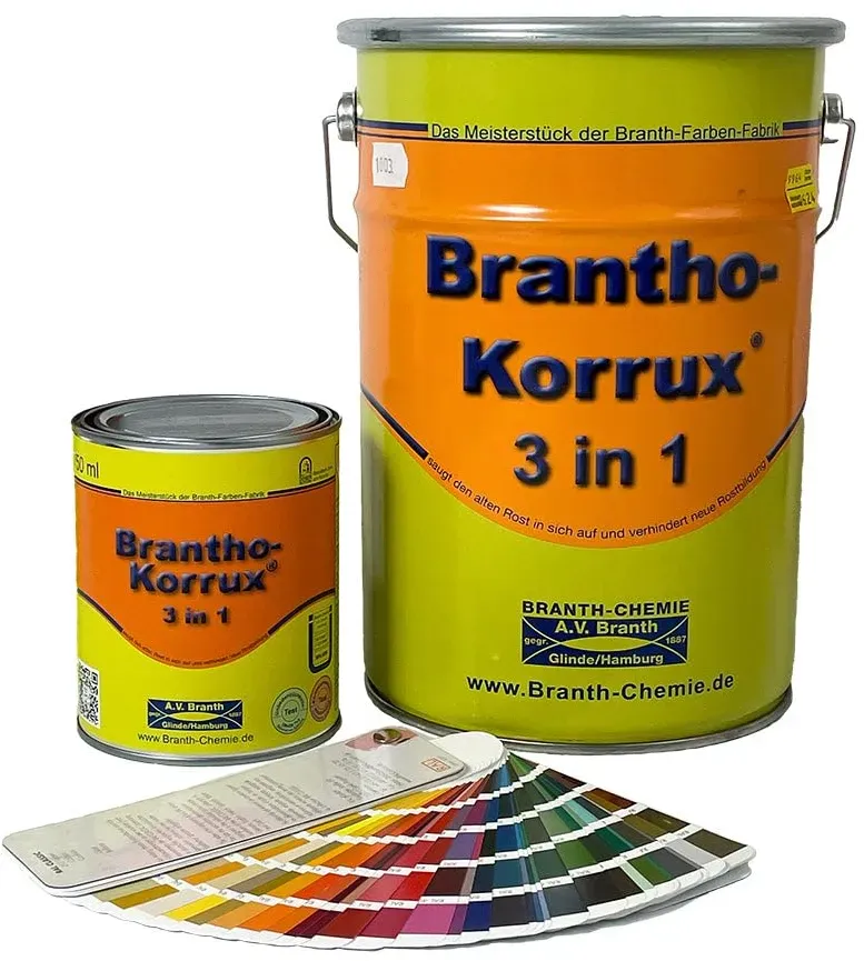 Kategorie: Farben & Lacke - Brantho Korrux - GTIN:4260360990014 - Rostschutzfarbe, Metallschutzfarbe, Instandhaltungsfarbe - 21,99 Euro bei Amazon Marketplace Home Improvement - gefunden von billiger.de Dieses 750ml Gebinde ist eine Standardgröße und bietet ein gutes Preis-Leistungs-Verhältnis für den allgemeinen Gebrauch. ![]() ![]() Brantho Korrux 3in1 Rostschutzfarbe - Primer, Rostschutz und Lack / 750ml