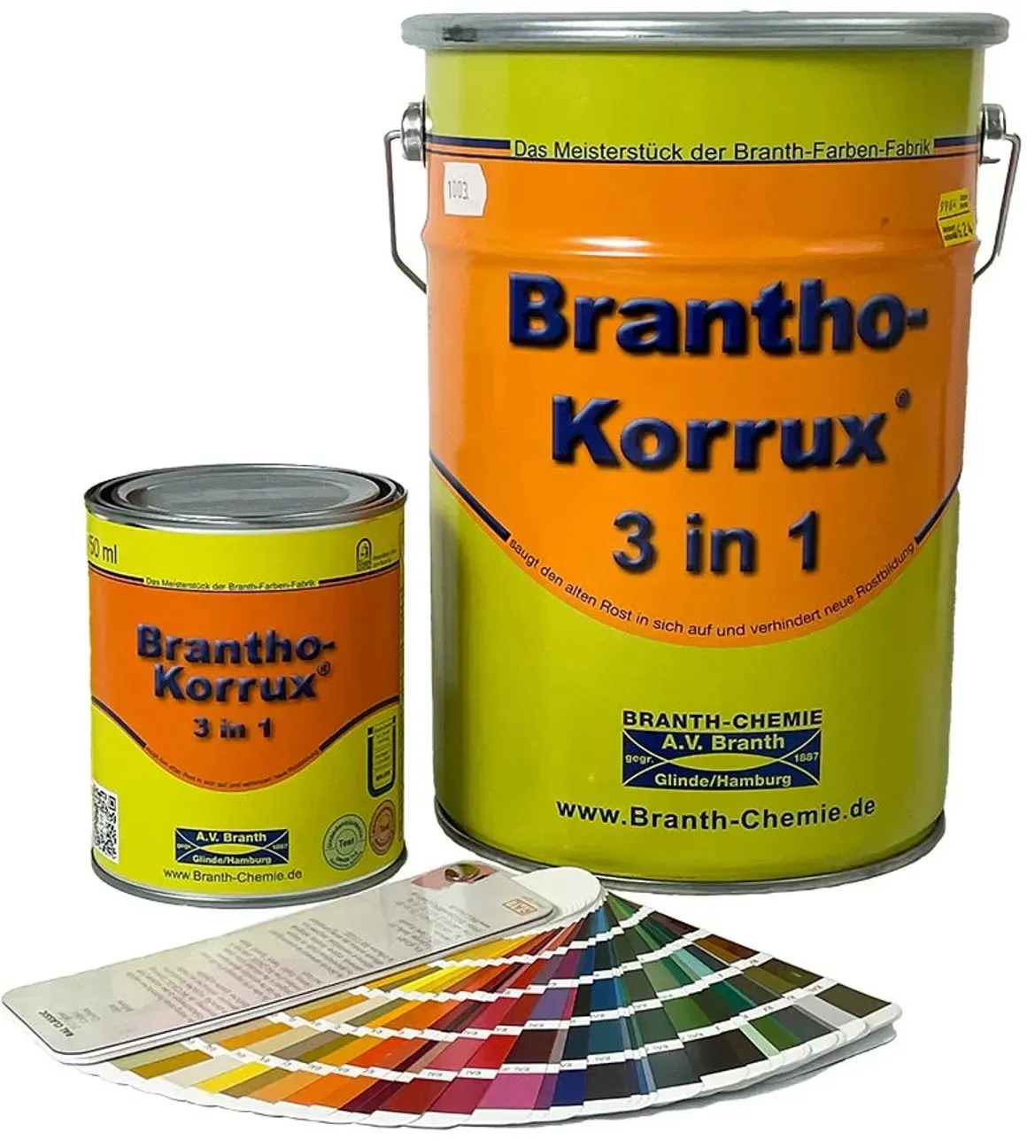 3 Händlerangebote bei billiger.de - Kategorie: öle & Schmierstoffe - Brantho Korrux - Brantho-Korrux 3in1 Primer, Rostschutz, und Lack in einem Professioneller Metallschutz mit einfacher Anwendung direkt auf Rost. Technische - GTIN:4260360990120 Dieser 5-Liter-Kanister in Anthrazitgrau bietet eine moderne und langlebige Beschichtung. ![]() ![]() echte brabth's Brantho-Korrux 3 in 1 Anthrazitgrau seidenglänzend 5 l