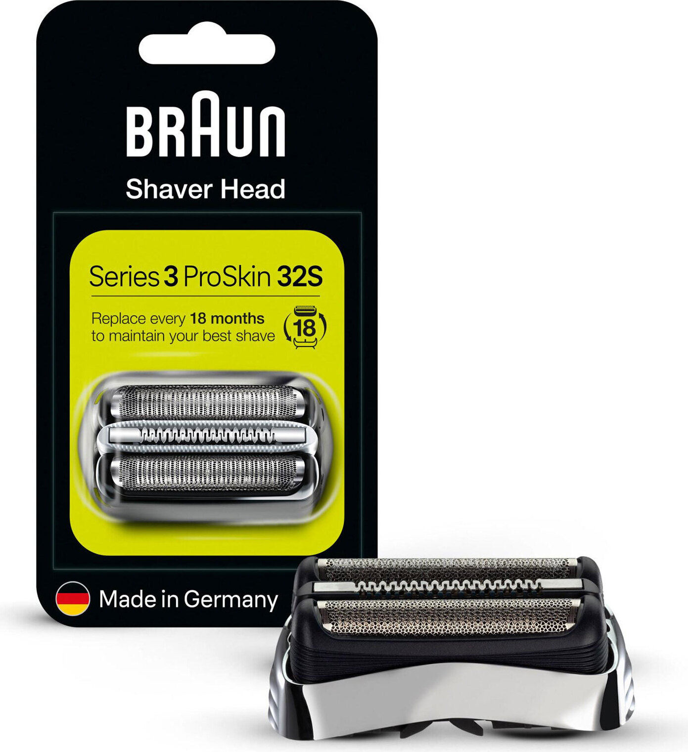 EAN: 4210201115809 - BRAUN Series 3 ProSkin 32S Ersatzscherteil Ihre Lösung für eine sanfte und gründliche RasurErleben Sie die nächste Stufe der Rasur mit dem BRAUN Series 3 ProSkin 32S Ersatzscherteil. Dieses hochwertige Scherteil ist nicht nur eine kostengünstige Option für die Wartung Ihres Rasierers, sondern auch der Schlüssel zu einer effektiven Rasur, die sanft zur Haut ist. Das neu gestaltete Design des flexiblen Scherkopfes sorgt dafür, dass jeder Haarschnitt mühelos und präzise erfolgt.Präzision und Komfort in einemDas BRAUN Series 3 ProSkin 32S überzeugt durch seine innovative Bauweise mit 3 Klingen und einem Mikro-Kamm. Diese Kombination ermöglicht es, auch die kürzesten Haare effektiv zu erfassen und gleichzeitig die Haut zu schonen. Das Ergebnis ist eine gründliche Rasur, die Hautirritationen minimiert.Höchste Qualitätsstandards aus DeutschlandDas Ersatzscherteil wird zu 100% in Deutschland produziert und entspricht den höchsten Qualitätsstandards. Mit Edelstahl-Klingen ausgestattet, bietet das Scherteil eine lange Lebensdauer und bleibt über die Zeit hinweg scharf. Es ist die perfekte Ergänzung zu Ihrem elektrischen Rasierer der Series 3 ProSkin.Einfache Handhabung und Austausch Dies stellt sicher, dass Sie immer von einer gründlichen Rasur profitieren, ohne dass die Effizienz Ihres Geräts leidet.Für eine Vielzahl von Anwendern geeignetDer BRAUN Series 3 ProSkin 32S ist ideal für Männer und Frauen jeden Alters, die einen zuverlässigen elektrischen Rasierer ... Dieser 32S Scherkopf ist ein Originalersatzteil für Braun Series 3 Rasierer und bietet eine gute Qualität. ![]() ![]() 32S Scherkopf - Series 3 eBay Ersatzscherteil Braun Series 3 Rasierer Herren 1er Pack