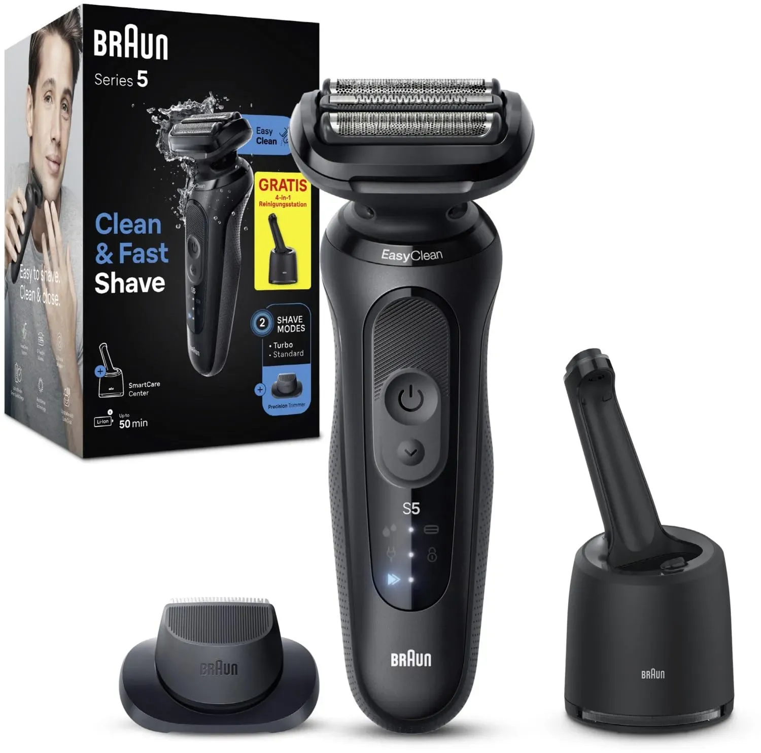 Verfügbarkeit: Auf Lager - Kategorie: Elektrische Rasierer - Braun - GTIN:8700216808057 - Braun Series 5 52-N7200cc + gratis cc - 110,00 Euro bei Amazon Marketplace Automotive - gefunden von billiger.de Dieses Angebot von notino.de ist mit 120.05 Euro ein beliebtes Modell mit Reinigungs- und Ladestation. ![]() ![]() Braun Series 5 52-N7200cc Elektrorasierer mit Reinigungs- und Ladestation SmartCare Black 1 St.