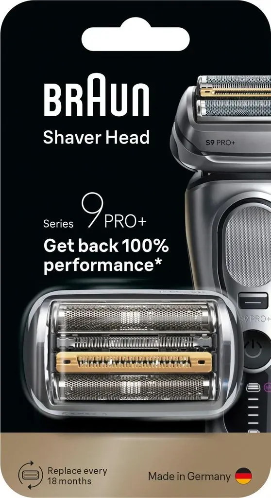 Auf Lager Versand durch AmazonBraun Series 9 PRO+ Elektrorasierer Scherkopf 96M ? ORIGINAL Ersatzscherteil und Rasierer Zubehör vom Hersteller ? Made in Germany, Kompatibel mit allen Braun Series 9 Rasierern ? Silber