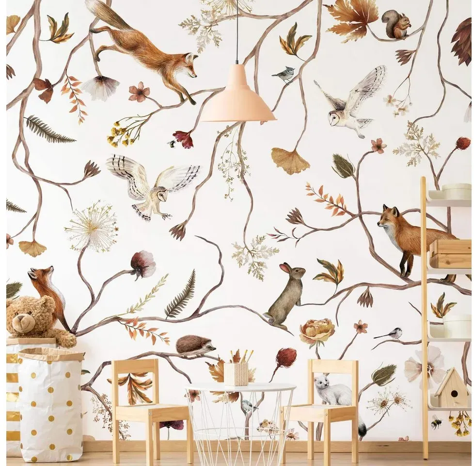 lieferbar-in 4-5 Werktagen bei dirBilderdepot24 Fototapete Waldtiere herbstlichen Zweigen, Glatt, Matt, (Vliestapete inkl. Kleister oder selbstklebend), Wohnzimmer Schlafzimmer Küche Flur Motivtapete Vliestapete Wandtapete beige|braun 96 m x 96 m