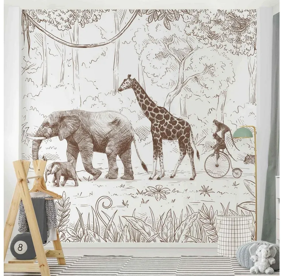 lieferbar-in 4-5 Werktagen bei dirBilderdepot24 Fototapete Tiere Dschungel Braun Natur Wald Bäume, Glatt, Matt, (Vliestapete inkl. Kleister oder selbstklebend), Wohnzimmer Schlafzimmer Küche Flur Motivtapete Vliestapete Wandtapete beige|braun 96 m x 96 m