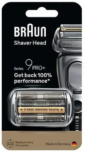 Auf Lager Versand durch AmazonBraun Series 9 PRO+ Elektrorasierer Scherkopf 96M ? ORIGINAL Ersatzscherteil und Rasierer Zubehör vom Hersteller ? Made in Germany, Kompatibel mit allen Braun Series 9 Rasierern ? Silber