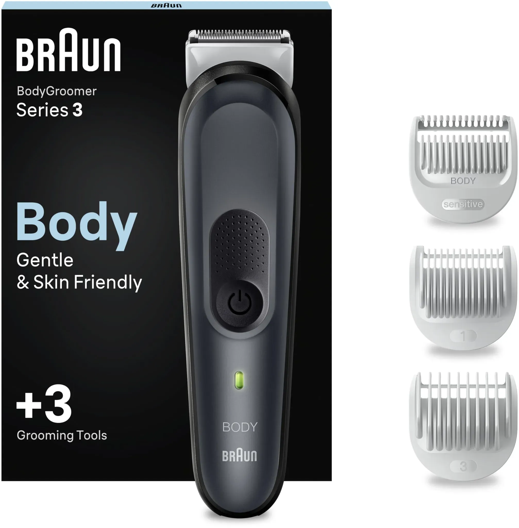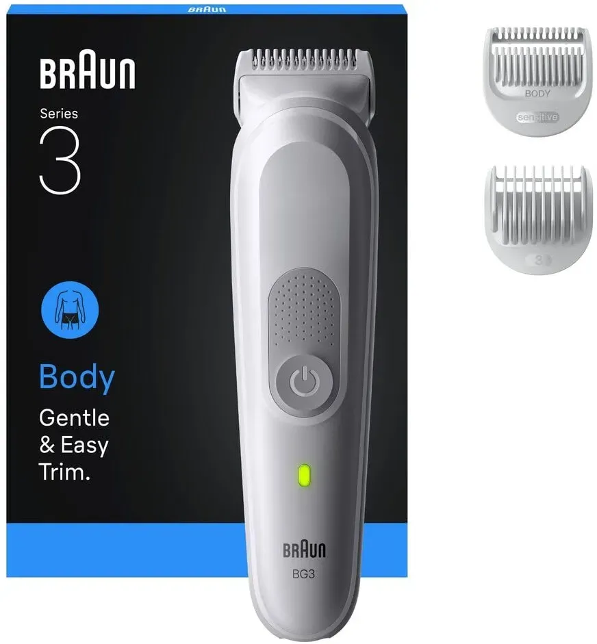Dieses Angebot ist ein Beispiel für Angebote, die kürzlich auf dem eBay-Marktplatz in der Kategorie 260783 verfügbar waren. Bitte aktualisieren Sie die Suchergebnisse um aktuelle Angebote zu erhalten. Ein gut ausgestatteter Bodygroomer Series 3 mit 3 Zubehörteilen und langer Akkulaufzeit. ![]() ![]() Braun Bodygroomer Series 3, Elektrischer Körperrasierer Herren mit 3 Zubehörteile, Kabelloser Trimmer für Intimbereich und Körper, 80 Min Akku, Wasserdichter Körperhaartrimmer, BG3340, Schwarz/Grau