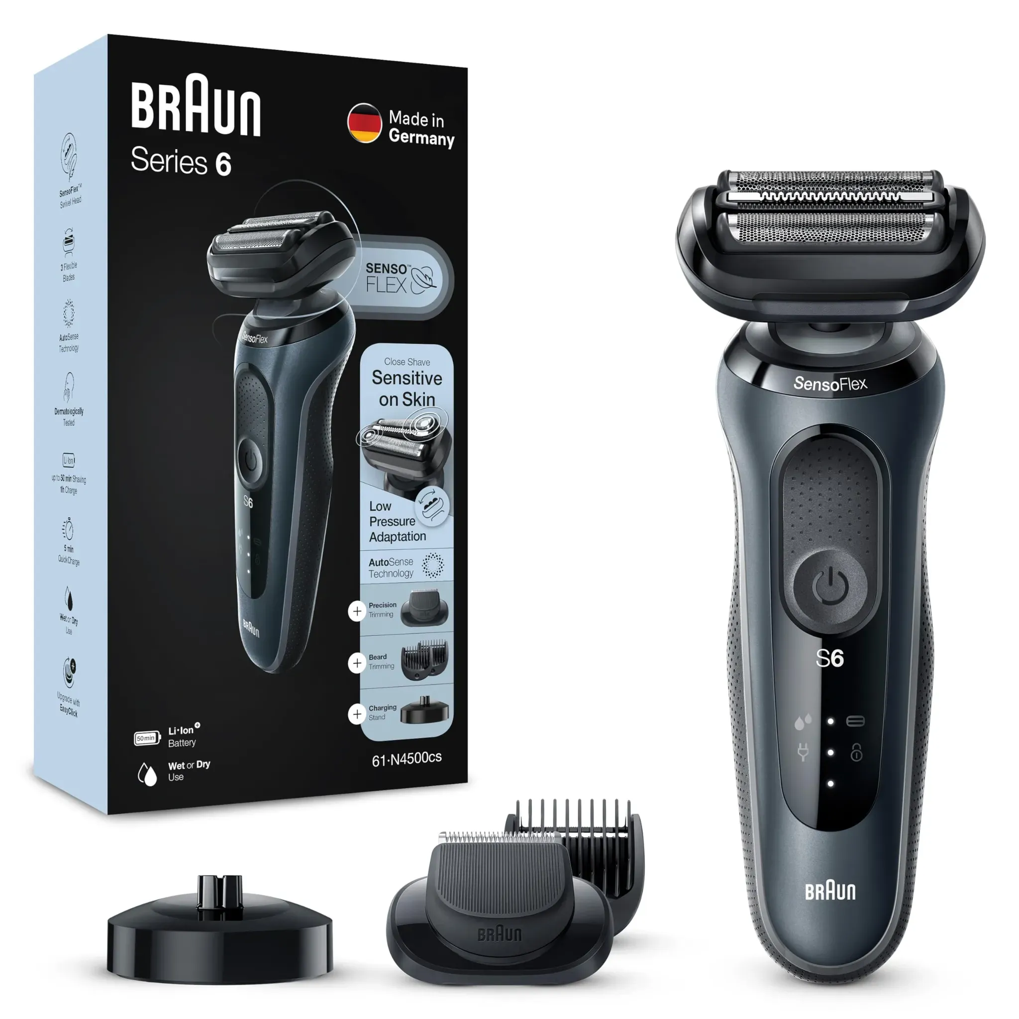 Auf Lager Versand durch AmazonBraun Series 6 Elektrorasierer mit EasyClick Barttrimmer Aufsatz, SensoFlex Rasierer Herren Elektrisch, Wet & Dry, Geschenk Mann, Made in Germany, 61-B1500s, blau