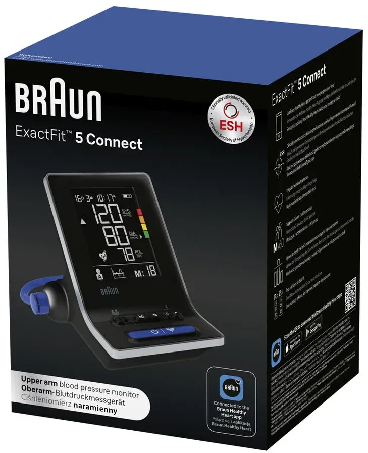 Zustand: Neu - Digitale Oberarm-Blutdruckmessgeräte - Braun Helen of Troy - BUA6350EU - EAN: 4022167173003 - KLINISCH NACHGEWIESENE PRÄZISION: Das Intelligente Braun ExactFit 5 Connect Oberarm-Blutdruckmessgerät wurde nach dem internationalen Protokoll der European Society of Hypertension klinisch geprüft und liefert genaue Ergebnisse, denen Sie vertrauen können BRAUN HEALTHY HEART APP: Synchronisiert sich automatisch über Bluetooth mit unseren verknüpften Braun Blutdruckmessgeräten und gibt Ihnen die Hilfsmittel an die Hand, mit denen Sie die besten Gesundheitsentscheidungen treffen können; Speichern Sie Ihre Daten, verfolgen Sie Ihre Fortschritte und erfahren Sie mehr über Ihre Herzgesundheit EINFACH ZU INTERPRETIERENDE ERGEBNISSE: Das extra große, beleuchtete Display bietet eine farbcodierte Anleitung, mit der Sie Ihre systolischen und diastolischen Werte und Pulsergebnisse gemäß den Richtlinien der Weltgesundheitsorganisation besser verstehen können BESTE PASSFORM FÜR VERBESSERTE PRÄZISION UND KOMFORT: Enthält zwei Manschettengrößen, die für normale und große Arme geeignet sind, um Präzision und Komfort während der Messung zu gewährleisten EXTRA SANFTE BLUTDRUCKMESSUNG: Das Braun ExactFit 5 Connect misst Ihren Blutdruck, während sich die Manschette aufbläst; Das Anziehen der Manschette wird gestoppt, wenn der individuelle Messwert erreicht ist, und die Manschette entleert sich schnell wieder; Das sorgt für Schnelligkeit und Komfort UNBEGRENZTER SPEICHER: Braun ExactFit ... printus.de bietet das Gerät ebenfalls zu einem guten Preis an, was es zu einer weiteren empfehlenswerten Option macht. ![]() BRAUN ExactFit 5 Connect Oberarm-Blutdruckmessgerät