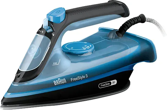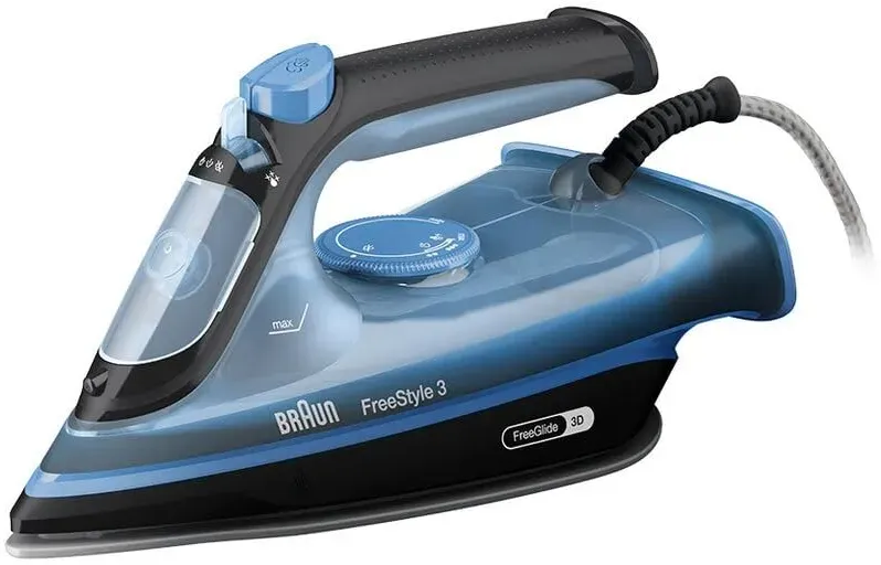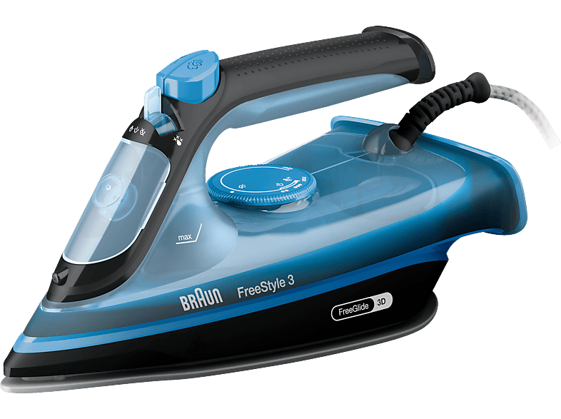 Auf Lager Versand durch AmazonBraun FreeStyle 3 FI3144BL Dampfbügeleisen mit 3D-FreeGlide-Technologie, SuperCeramic-Sohle, Ultimate FastClean, automatische Abschaltung, Tank 270 ml, 2700 W, Blau