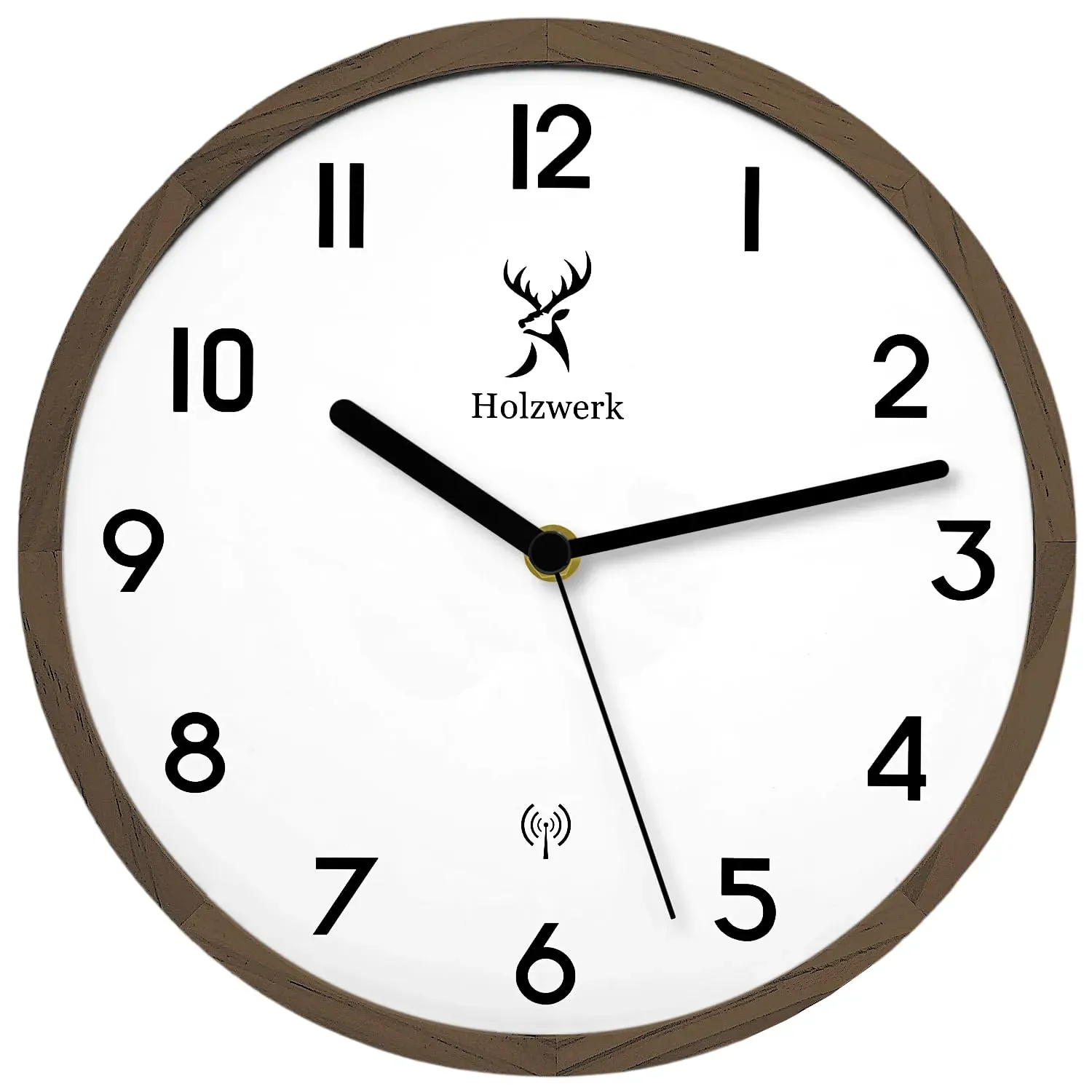 Zustand: Neu - Wanduhren - Braun - BC06R-DCF - EAN: 5013348620002 - MEZ (GMT+1) Funkuhr für die Mitteleuropäische Zeitzone. (Dies deckt den größten Teil von Mittel- und Westeuropa einschließlich Deutschland, Frankreich, die Niederlande, Belgien, Dänemark, die Schweiz, Norditalien usw. ab.) Nicht für das Vereinigte Königreich oder Irland geeignet. Leicht lesbares Zifferblatt mit unterschiedlich farbigen Stunden- und Minutenzeigern für eine gute Lesbarkeit. Ideal für Küche/Wohnzimmer/Schlafzimmer/Büro/Schule/Arbeitszimmer. Abmessungen: B 20 cm x H 20 cm x T 3,2 cm Mattweißes Gehäuse und Zifferblatt Die Braun BC06 Uhr benötigt zum Betrieb 1 x AA-Batterie, diese ist jedoch NICHT ENTHALTEN. Für die beste Leistung der Zeitanzeige empfehlen wir, NUR NEUE ALKALINE-Batterien zu verwenden. - Verkäufer: Gift Oasis im amazon.de Marketplace Diese Holzwerk Germany Funkwanduhr aus Massivholz ist mit 39.99 Euro eine hochwertige und ästhetische Wahl für Liebhaber von Naturmaterialien. ![]() ![]() Holzwerk Germany Holzwerk Natur Holz Funkwanduhr Funk Wanduhr Holz-Uhr Vintage Funkuhr lautloses Uhrwerk ohne Tickgeräusche Braun Weiß lautlos aus handgefertigtem Massivholz 25 cm