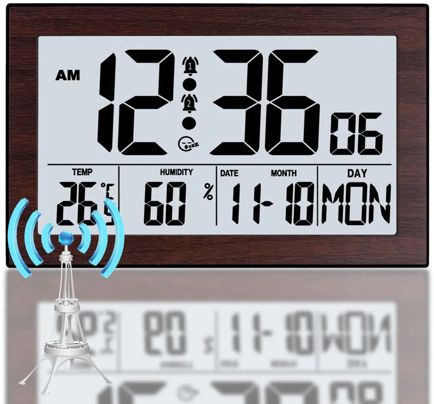 Kategorie: Wanduhren - MeYuxg - Multifunktionales Design: Die Rückseite der digitale wanduhr batteriebetrieben verfügt über eine Aufhängevorrichtung und einen versteckten Ständer, sodass sie sowohl an der Wand aufgehängt als auch stabil auf dem Tisch aufgestellt werden kann und somit den unterschiedlichen Anforderungen verschiedener Situationen gerecht wird. Multifunktionales Design: Die Rückseite der digitale wanduhr batteriebetrieben verfügt über eine Aufhängevorrichtung und einen versteckten Ständer, sodass sie sowohl an der Wand aufgehängt als auch stabil auf dem Tisch aufgestellt werden kann und somit den unterschiedlichen Anforderungen verschiedener Situationen gerecht wird. Klare Anzeige in großer Schrift: Der große LCD-Bildschirm der wanduhr digital batteriebetrieben zeigt die Uhrzeit, das Datum, die Luftfeuchtigkeit und die Raumtemperatur ( C/ F) in fetter Schrift an, sodass ältere Menschen, Kinder und Erwachsene die Informationen leicht ablesen können, was den Alltag erleichtert. Außerdem verfügt die tischuhr digital über eine Weckfunktion (2 Weckzeiten, Schlummerfunktion einstellbar). Geräuscharmes und umweltfreundliches Design: Diese funkgesteuerte digital uhr wanduhr verfügt über eine Geräuschunterdrückungsfunktion, die dafür sorgt, dass nachts weder Licht noch Geräusche zu hören sind, und Ihnen so eine angenehme Schlafumgebung schafft. Sie eignet sich daher ideal für Schlafzimmer, Wohnzimmer und andere öffentliche Räume. Einfache und benutzerfreundliche ... Diese Funkwanduhr in Holzoptik ist mit 29.89 Euro eine stilvolle und preisgünstige Wahl für Wohnzimmer oder Küche. ![]() ![]() CLOXON Funkwanduhr Holz Optik Wohnzimmeruhr Funkuhr 32,5 cm ohne Ticken Küchenuhr batteriebetrieben Design Wanduhr braun