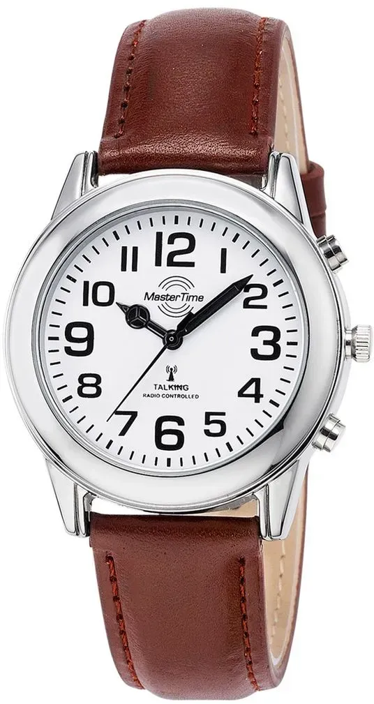 Kategorie: Digitaluhren - Master Time - GTIN:4260736036247 - Ausstattung , Leuchtzeiger, Modellbezeichnung , MTGA-10959-82L, Antrieb , Quarz, Empfangstechnologie , Funk, Funkempfangsregion , in Europa, Anzeige , analog, digital, Wasserdicht , spritzwassergeschützt, Datumsfunktionen , automatischer Kalender, wahlweise Datum oder Wochentag, Zusatzfunktionen , autom. Zeitumstellung von Sommer- und Winterzeit, dezentrale Sekunde, Zifferblattfarbe , hellbraun, Gehäusefarbe , silberfarben, Armbandfarbe , braun-hellbraun, Gehäusematerial , Metall, Armbandmaterial , Leder, Gehäusedetails , IP-beschichtet, Stil , Basic, klassisch, Glas , Mineralglas, Verschluss Armband , Dornschließe, Gehäusedurchmesser (ohne Krone) , 41 mm, Anzahl Batterien , 1 St., Batterie-/Akku-Technologie , 3-V-CR-2032, Besondere Merkmale , Quarzuhr, Armbanduhr, Herrenuhr, Lederarmband, analog, digital, WEEE-Reg.-Nr. DE , 46550909, - 59,95 Euro bei OTTO - gefunden von billiger.de Diese sprechende Herren-Funkuhr von Master Time ist mit 69.95 Euro eine innovative Lösung für Menschen mit Sehschwäche. ![]() ![]() Master Time MTGA-10806-12L Sprechende Herren-Funkuhr Herrenuhr 40mm - Braun/Weiß